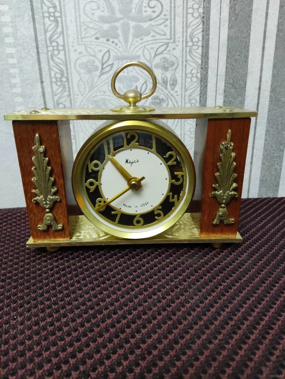 Часы настольные (кабинетные) Маяк. Механика. 80-е г. Отличное состояние. Уверенный точный ход. Корпус – дерево, латунь. Высота 13 см. Основание 18 х 5,5 см. Циферблат 10 см. Завод на 2 недели! Обслужены, почищены.