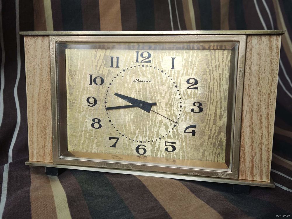 Часы настольные (кабинетные) Молния. Механика. 70-е гг. Отличное состояние. Уверенный точный ход. Корпус – латунь, пластик под дерево. Высота 13 см. Размеры 20 х 12 х 6,5 см. Завод на 2 недели! Обслужены, почищены.