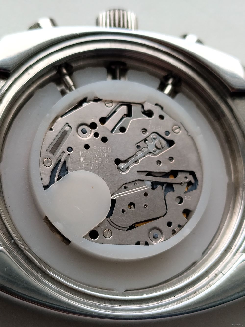 Miyota FS00 — это надежный кварцевый японский механизм хронографа от компании Citizen. Он отличается малой толщиной (4.13 мм) и наличием трех дополнительных циферблатов: 24-часового счетчика, малого секундного и минутного счетчика хронографа.