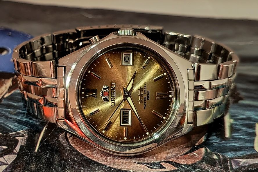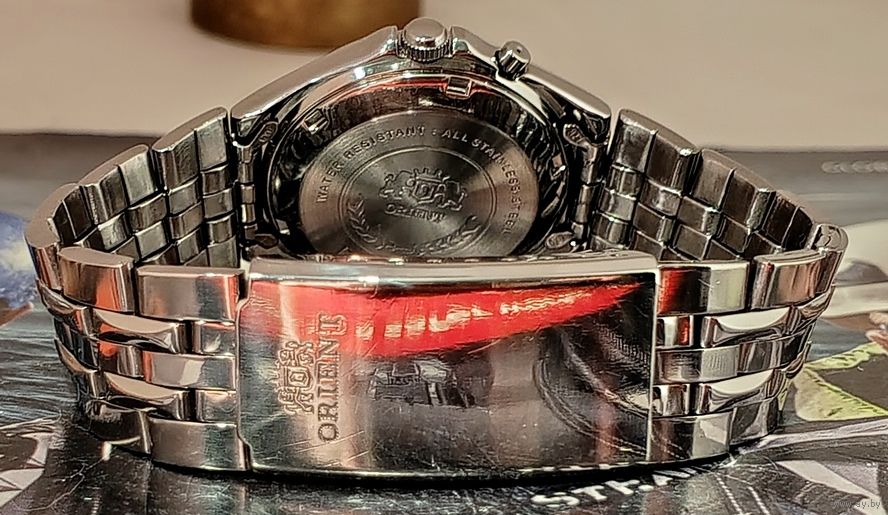 Редкие японские механические часы ORIENT 3 Stars. Автоподзавод, двуязычный день недели, календарь мгновенного действие, центральная секундная стрелка, противоударное устройство узла баланса, водозащищённые, корпус часов и браслет изготовлен из высококачественной нержавеющей стали (браслет на среднее по размеру запястье), минеральное стекло, светонакопительный состав на стрелках и метках на циферблате... Часы на уверенном ходу. Более подробную информацию о данных часах можно найти на просторах интернета. Уважаемые покупатели - ЗА РАБОТУ/ПОСЛЕДСТВИЯ СЛУЖБ ДОСТАВКИ Я ОТВЕТСТВЕННОСТЬ НЕ НЕСУ. ПОКУПАТЕЛЬ ПЕРВЫМ ВЫХОДИТ НА СВЯЗЬ В ТЕЧЕНИИ 2 (двух) ДНЕЙ! В ПОСЛЕДУЮЩИЕ 2 (ДВА) ДНЯ ВЫКУПАЕТ/ОПЛАЧИВАЕТ ЛОТ! Иное оговаривается заранее! Лот отправляю в течении пяти рабочих дней с момента полной оплаты. Делая ставку вы соглашаетесь с вышеуказанными условиями.