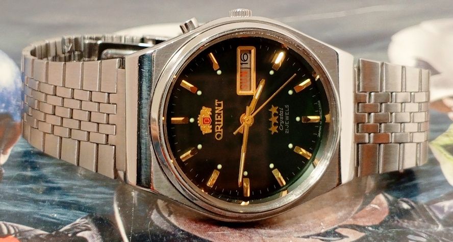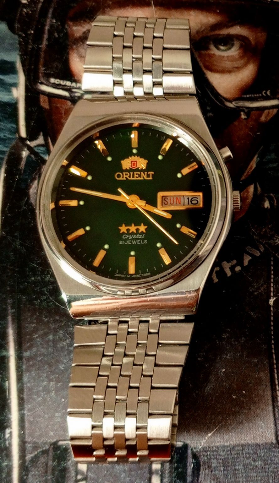 Редкие японские механические часы ORIENT 3 Stars. Автоподзавод, двуязычный день недели (английский/итальянский), календарь мгновенного действие, центральная секундная стрелка, противоударное устройство узла баланса, водозащищённые, корпус часов и браслет изготовлен из высококачественной нержавеющей стали (БРАСЛЕТ ПО РАЗМЕРУ НА СРЕДНЕЕ ЗАПЯСТЬЕ), минеральное стекло, светонакопительный состав на стрелках и метках на циферблате... Часы на уверенном ходу. Более подробную информацию о данных часах можно найти на просторах интернета. Уважаемые покупатели - ЗА РАБОТУ/ПОСЛЕДСТВИЯ СЛУЖБ ДОСТАВКИ Я ОТВЕТСТВЕННОСТЬ НЕ НЕСУ. ПОКУПАТЕЛЬ ПЕРВЫМ ВЫХОДИТ НА СВЯЗЬ В ТЕЧЕНИИ 2 (двух) ДНЕЙ! В ПОСЛЕДУЮЩИЕ 2 (ДВА) ДНЯ ВЫКУПАЕТ/ОПЛАЧИВАЕТ ЛОТ! Иное оговаривается заранее! Лот отправляю в течении пяти рабочих дней с момента полной оплаты. Делая ставку вы соглашаетесь с вышеуказанными условиями.