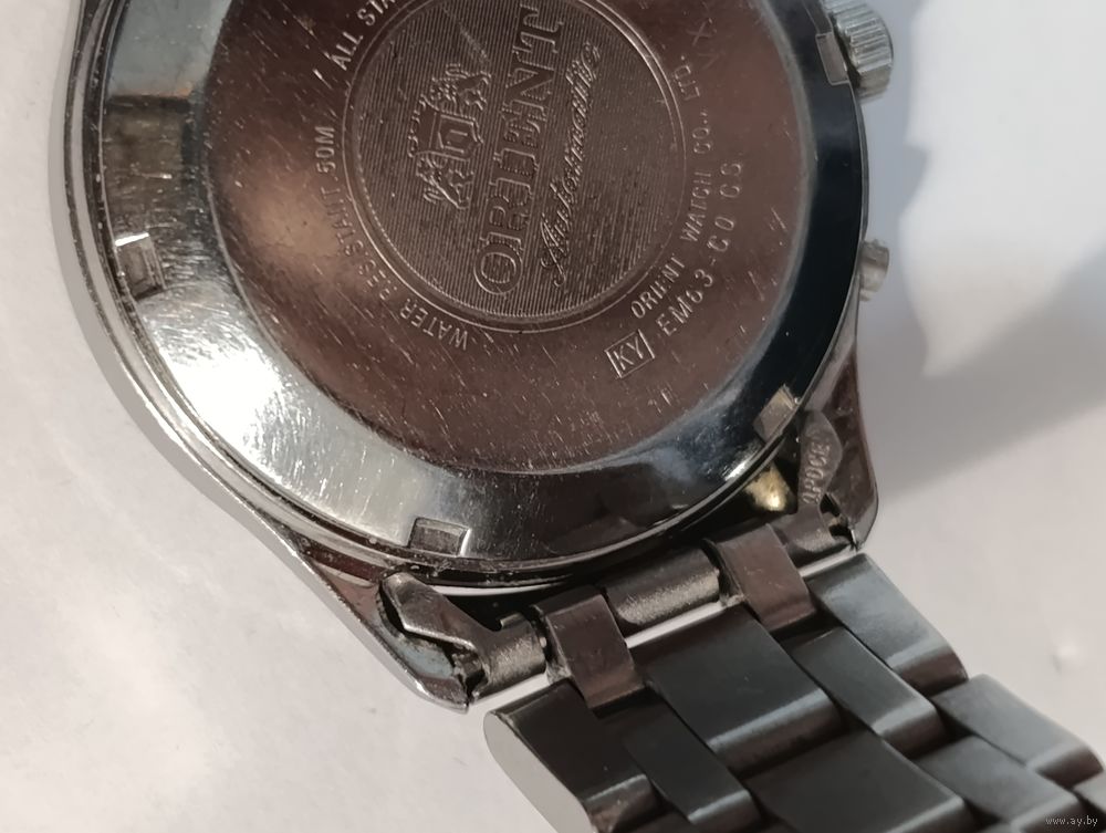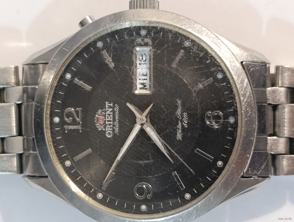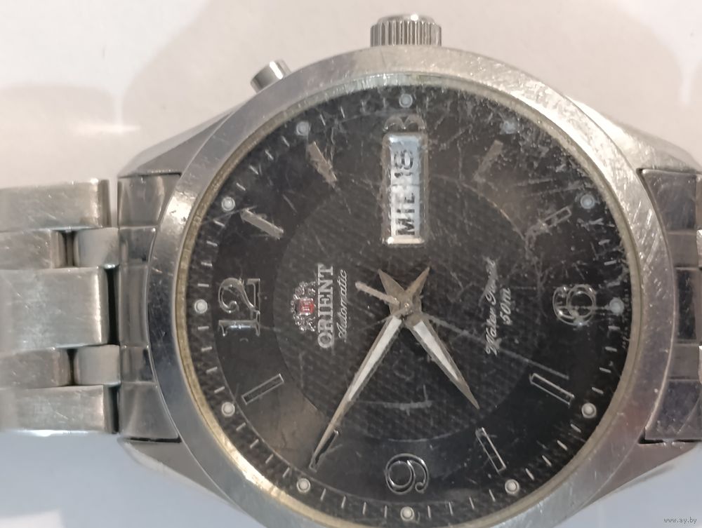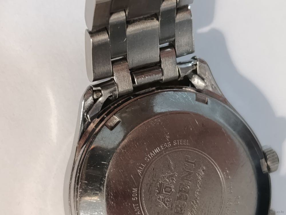 Механизм работает,кнопка тоже. Заедает день недели и переключается не в то время. Стекло очень поцарапонное,но цыферблат в отличном состоянии. С одной стороны ушко не родное.