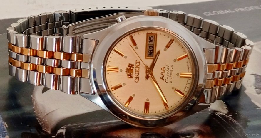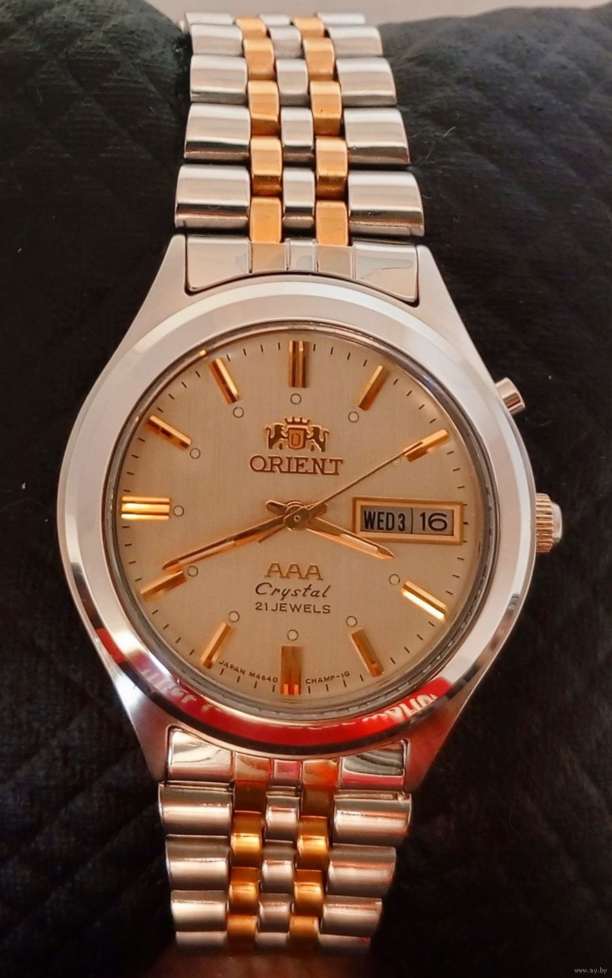 Редкие японские механические часы ORIENT AAA Crystal. Автоподзавод, двуязычный день недели, календарь мгновенного действие, центральная секундная стрелка, противоударное устройство узла баланса, водозащищённые, корпус часов и браслет изготовлен из высококачественной нержавеющей стали, минеральное стекло, светонакопительный состав на стрелках и метках на циферблате... Часы на уверенном ходу. Более подробную информацию о данных часах можно найти на просторах интернета. Уважаемые покупатели - ЗА РАБОТУ/ПОСЛЕДСТВИЯ СЛУЖБ ДОСТАВКИ Я ОТВЕТСТВЕННОСТЬ НЕ НЕСУ. ПОКУПАТЕЛЬ ПЕРВЫМ ВЫХОДИТ НА СВЯЗЬ В ТЕЧЕНИИ 2 (двух) ДНЕЙ! В ПОСЛЕДУЮЩИЕ 2 (ДВА) ДНЯ ВЫКУПАЕТ/ОПЛАЧИВАЕТ ЛОТ! Иное оговаривается заранее! Лот отправляю в течении пяти рабочих дней с момента полной оплаты. Делая ставку вы соглашаетесь с вышеуказанными условиями.