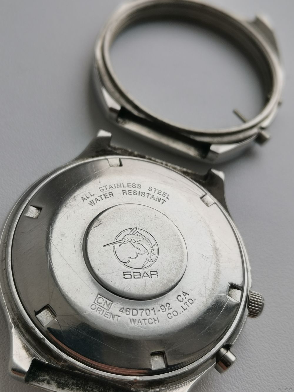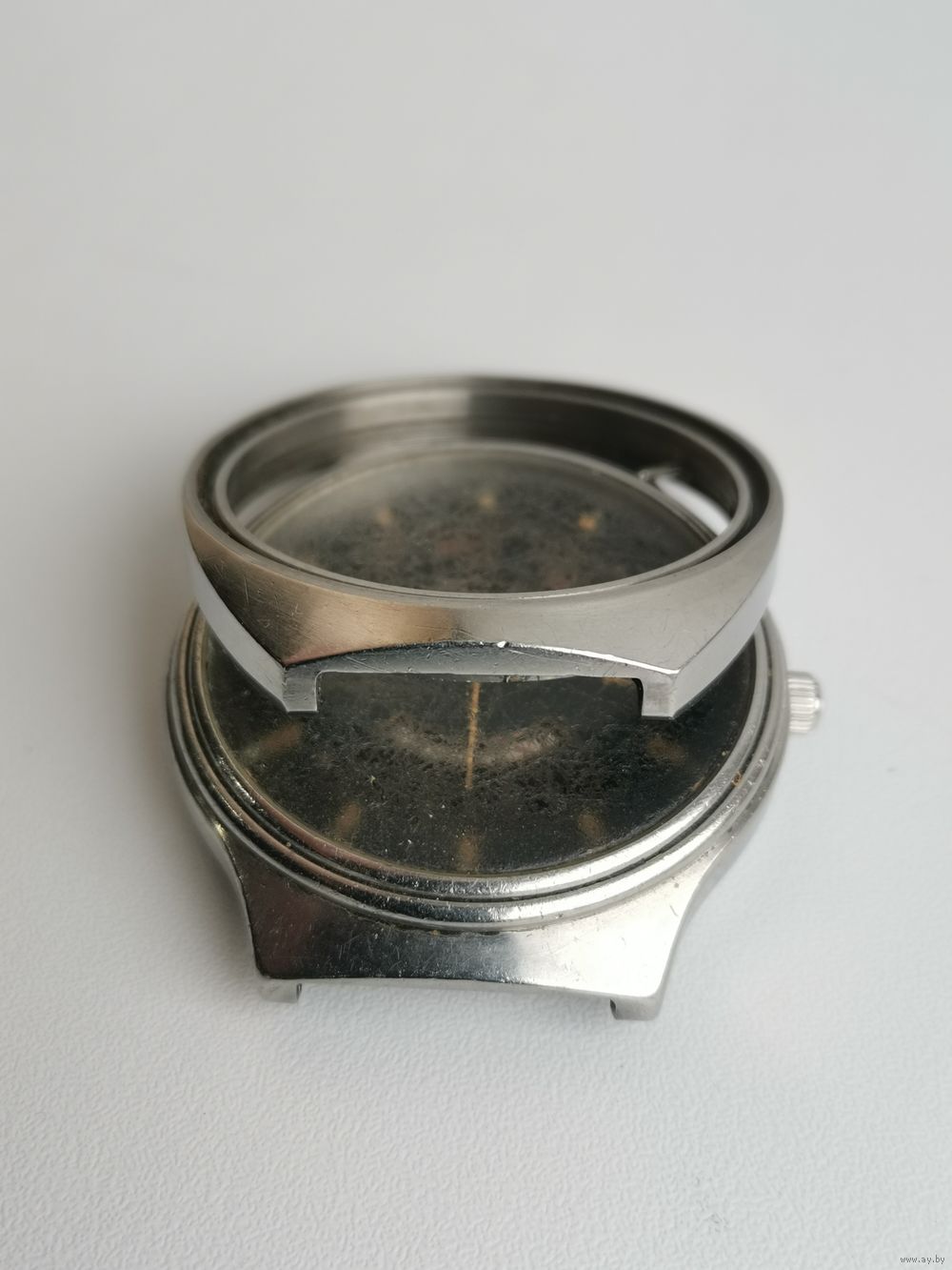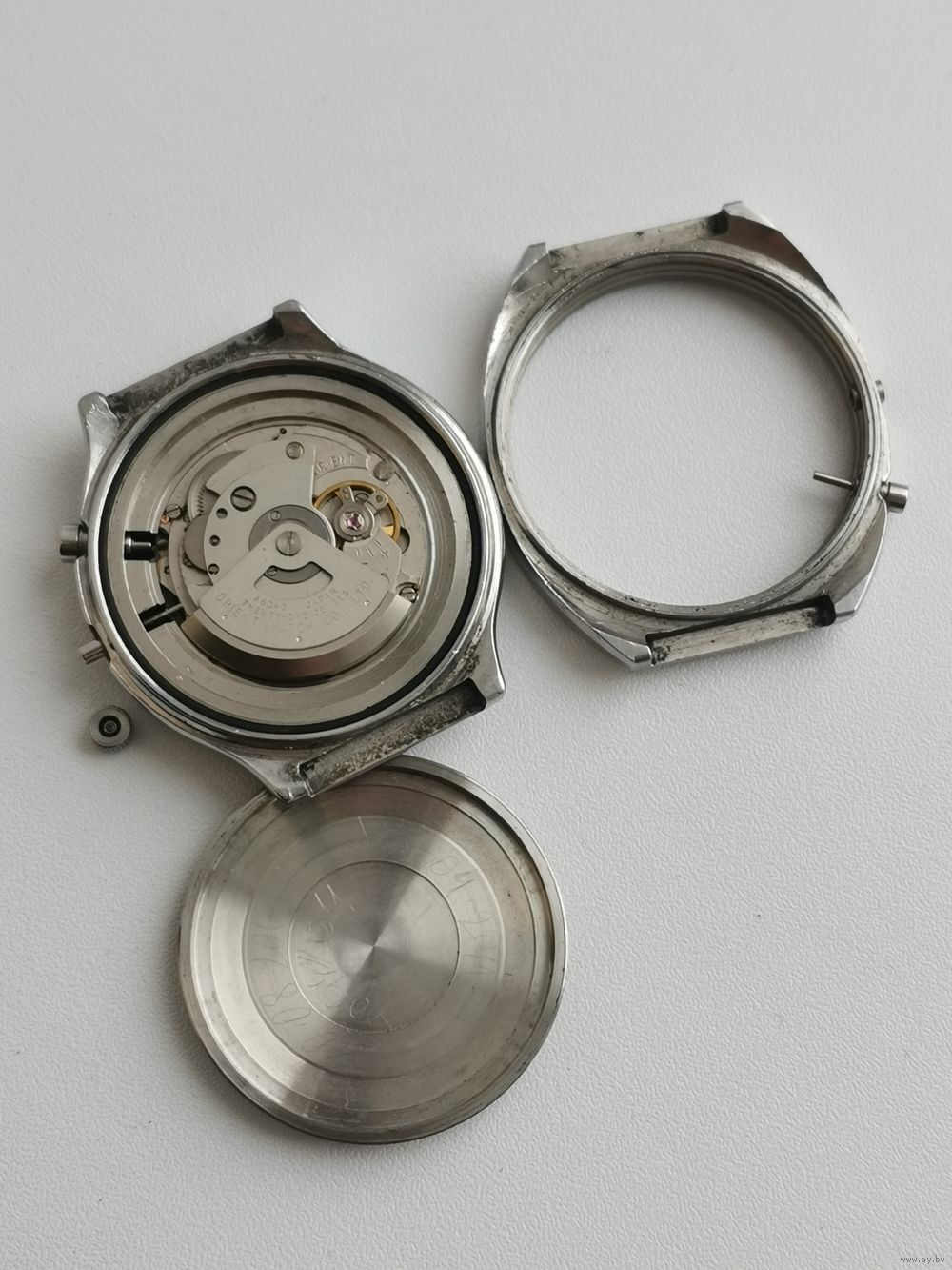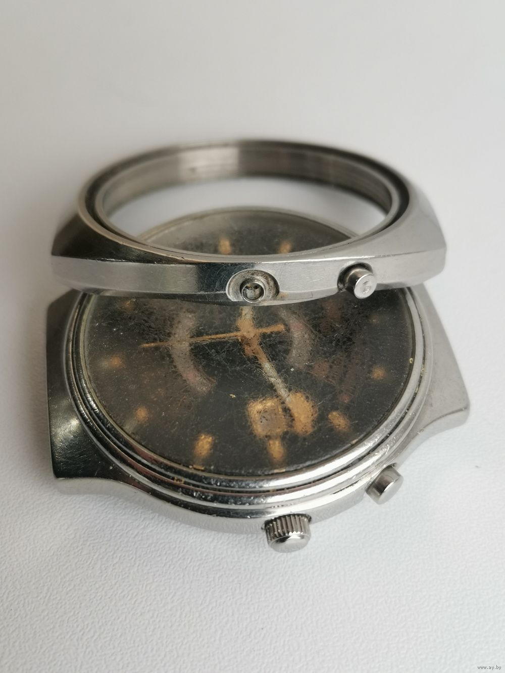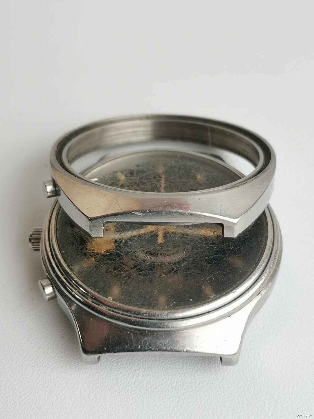 | См. фотографии. Часы тикают, баланс целый, головка отломана от вала, стекло в царапках, кнопка срабатывает и переключает. | |