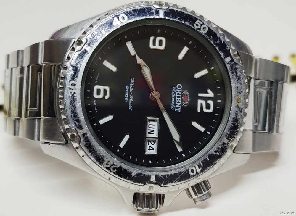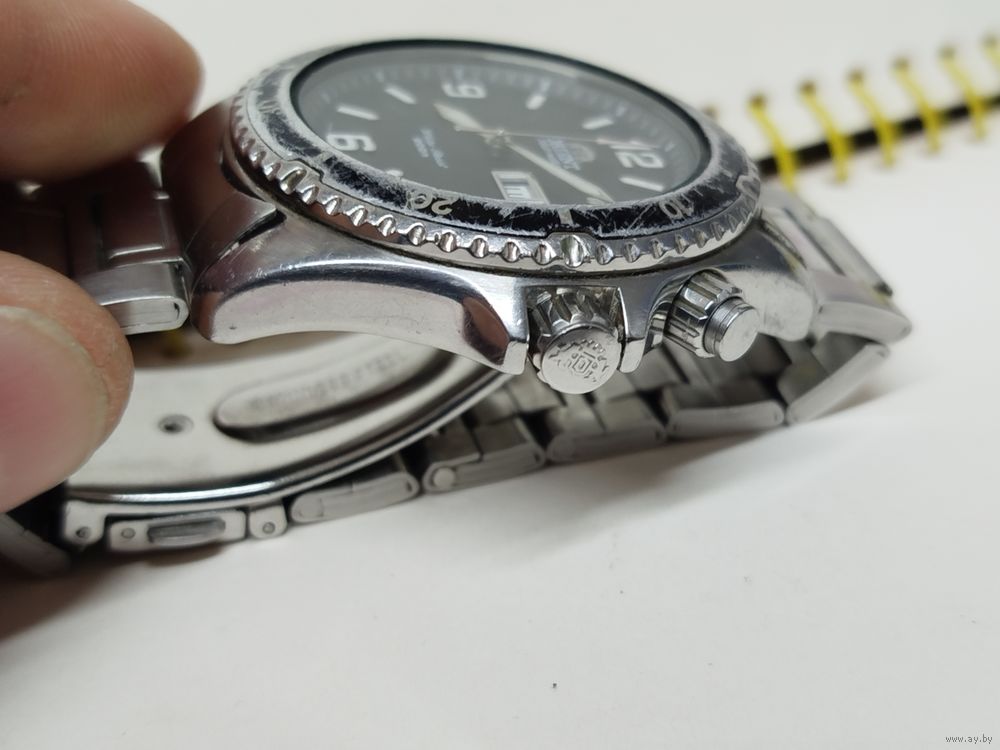 Часы на ходу!! Кнопка исправная,календари рабочие,стекло менялось так как родное было с трещиной,браслет не родной !