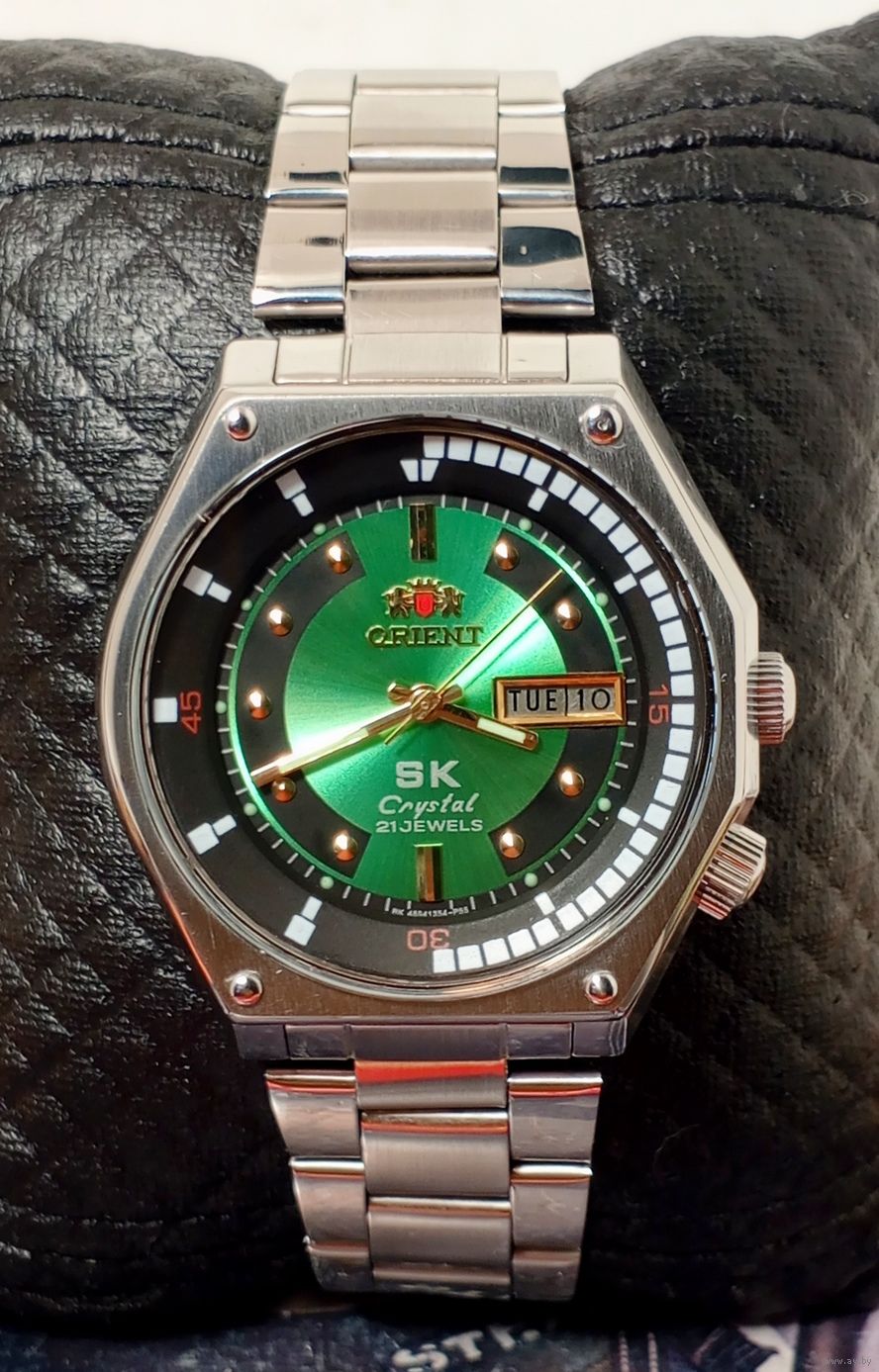 Редкие японские механические часы ORIENT SK (Sea King). Автоподзавод (механизм 46943), двуязычный день недели, календарь мгновенного действия, центральная секундная стрелка, противоударное устройство узла баланса, водозащищённые, корпус часов и браслет изготовлен из нержавеющей стали, минеральное стекло, внутренний поворотный диск времени (безель), светонакопительный состав на стрелках и метках на циферблате... Часы на уверенном ходу. Более подробную информацию о данных часах можно найти на просторах интернета. Уважаемые покупатели - ЗА РАБОТУ/ПОСЛЕДСТВИЯ СЛУЖБ ДОСТАВКИ Я ОТВЕТСТВЕННОСТЬ НЕ НЕСУ. ПОКУПАТЕЛЬ ПЕРВЫМ ВЫХОДИТ НА СВЯЗЬ В ТЕЧЕНИИ 2 (двух) ДНЕЙ! В ПОСЛЕДУЮЩИЕ 2 (ДВА) ДНЯ ВЫКУПАЕТ/ОПЛАЧИВАЕТ ЛОТ! Иное оговаривается заранее! Лот отправляю в течении пяти рабочих дней с момента полной оплаты. Делая ставку вы соглашаетесь с вышеуказанными условиями.