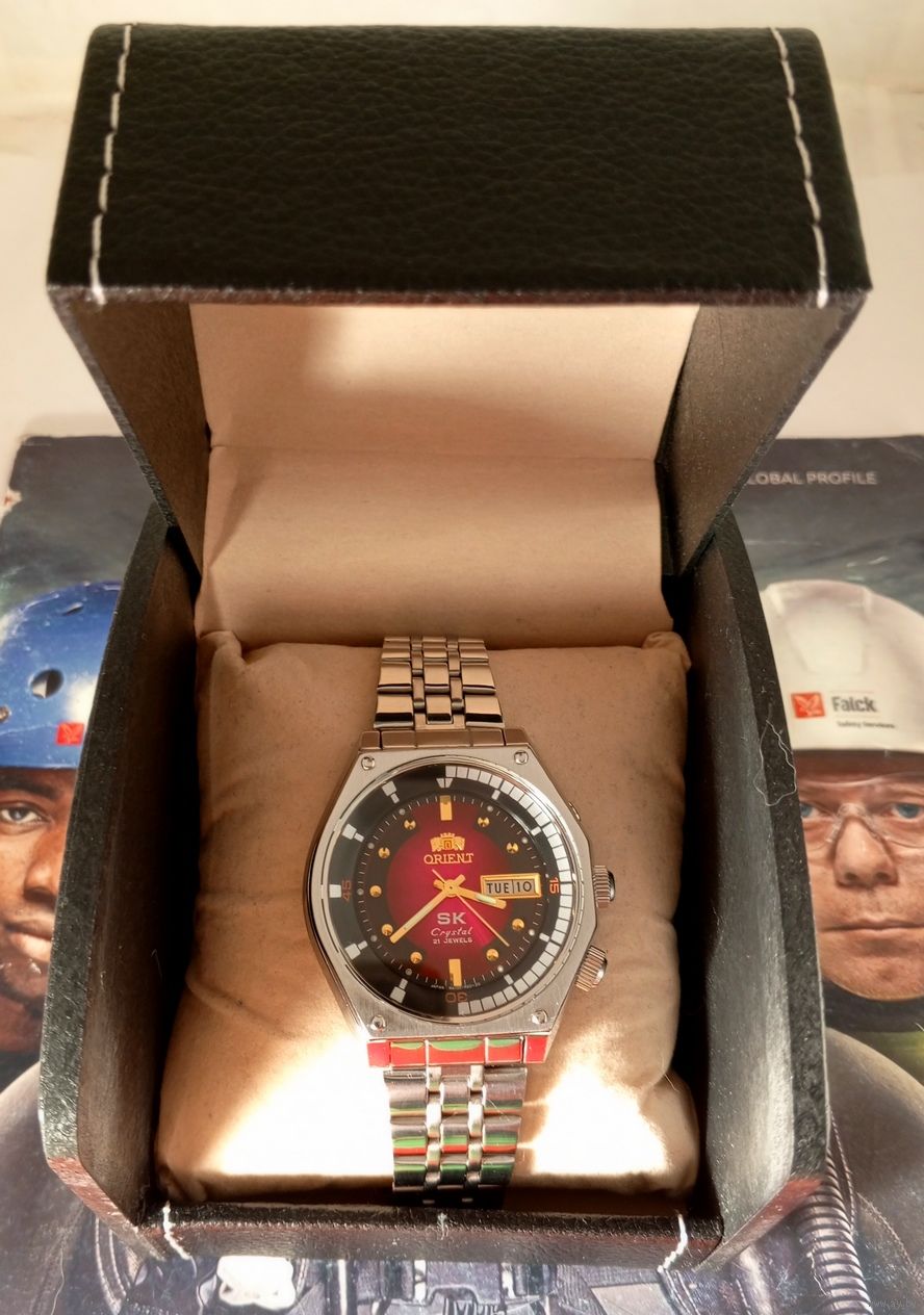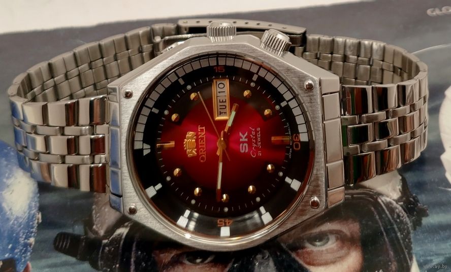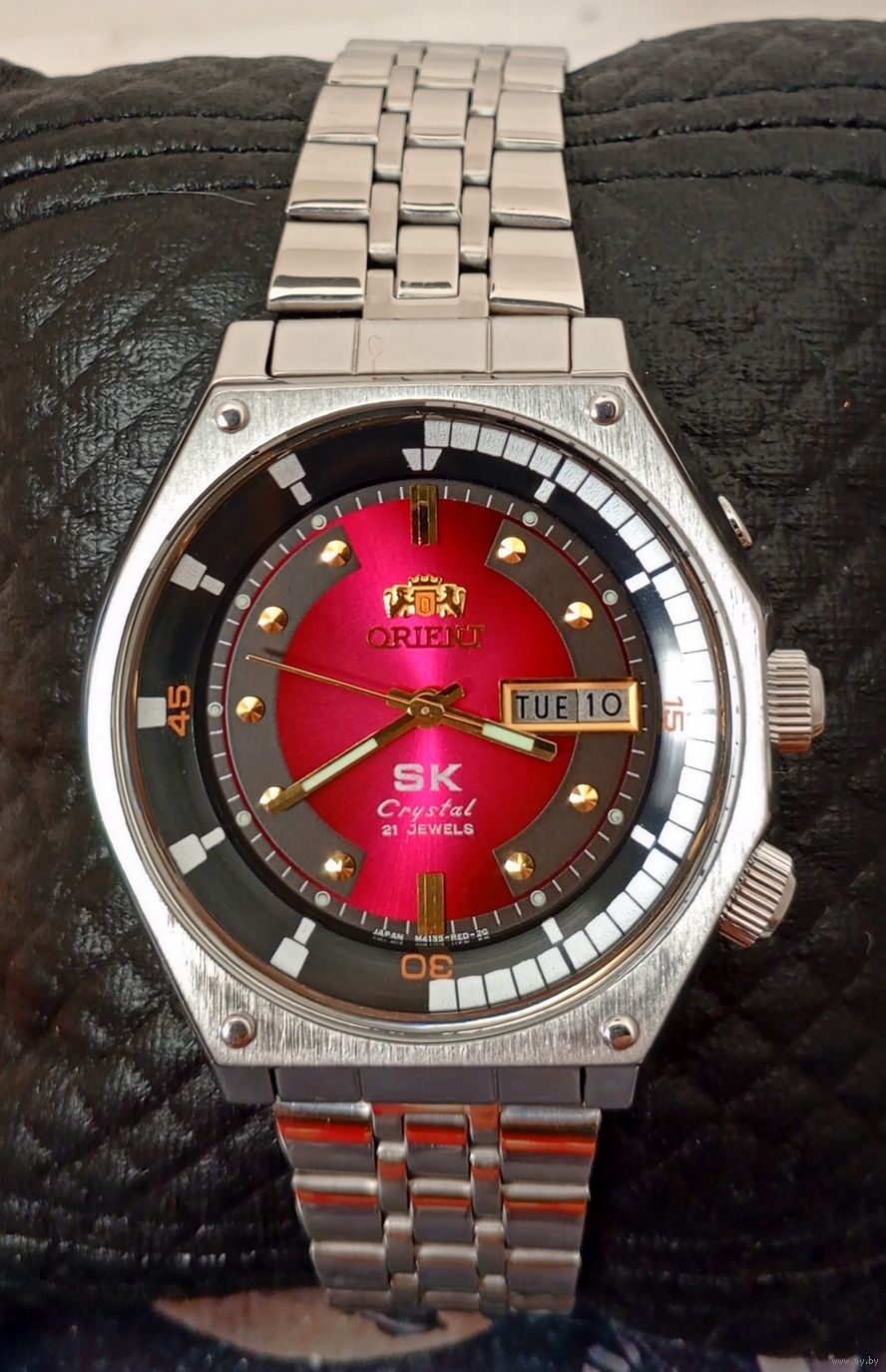 Редкие японские механические часы ORIENT SK. Автоподзавод, двуязычный день недели (английский,французский), календарь мгновенного действие, центральная секундная стрелка, противоударное устройство узла баланса, водозащищённые, корпус часов и браслет изготовлен из высококачественной нержавеющей стали, минеральное стекло, внутренний поворотный диск времени (безель), светонакопительный состав на стрелках и метках на циферблате... Часы на уверенном ходу. Более подробную информацию о данных часах можно найти на просторах интернета. Уважаемые покупатели - ЗА РАБОТУ/ПОСЛЕДСТВИЯ СЛУЖБ ДОСТАВКИ Я ОТВЕТСТВЕННОСТЬ НЕ НЕСУ. ПОКУПАТЕЛЬ ПЕРВЫМ ВЫХОДИТ НА СВЯЗЬ В ТЕЧЕНИИ 2 (двух) ДНЕЙ! В ПОСЛЕДУЮЩИЕ 2 (ДВА) ДНЯ ВЫКУПАЕТ/ОПЛАЧИВАЕТ ЛОТ! Иное оговаривается заранее! Лот отправляю в течении пяти рабочих дней с момента полной оплаты. Делая ставку вы соглашаетесь с вышеуказанными условиями.