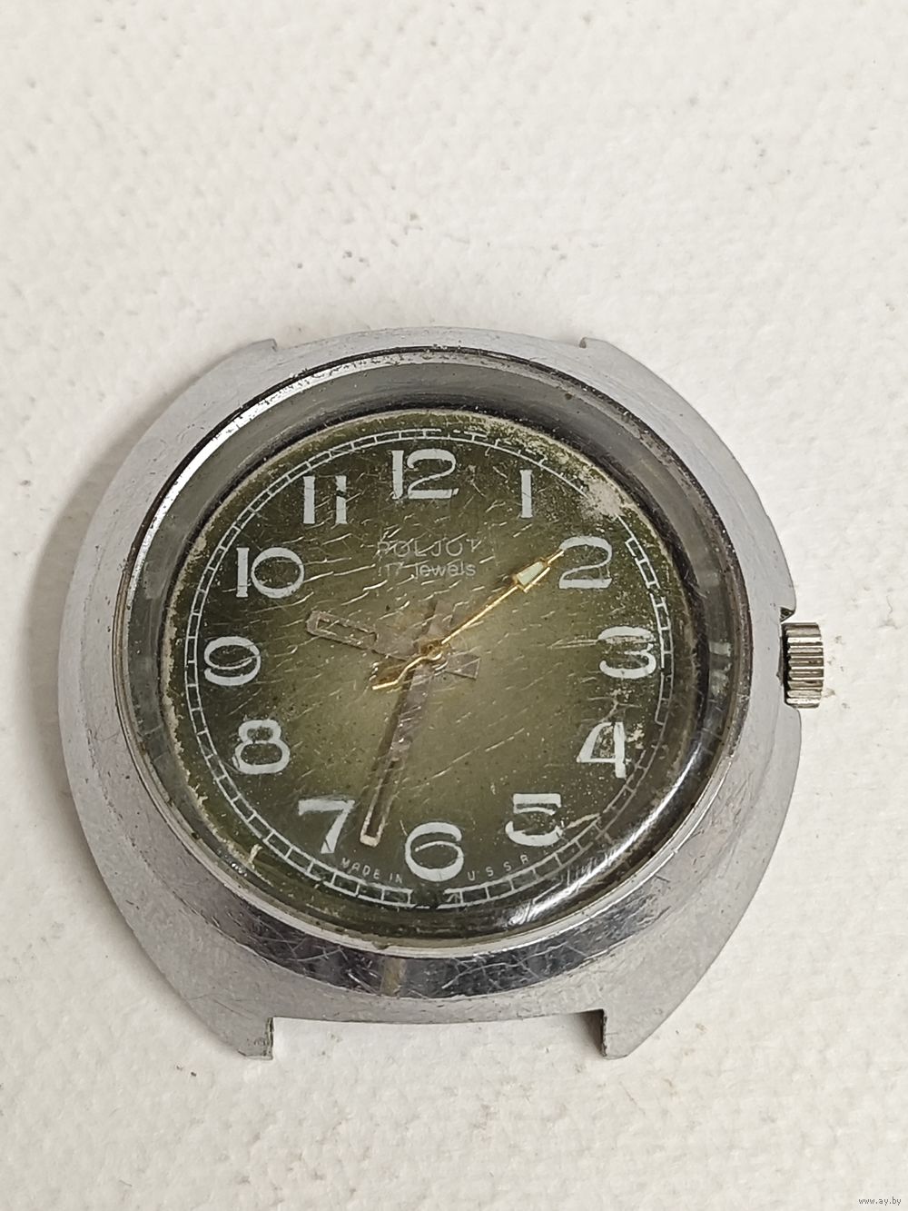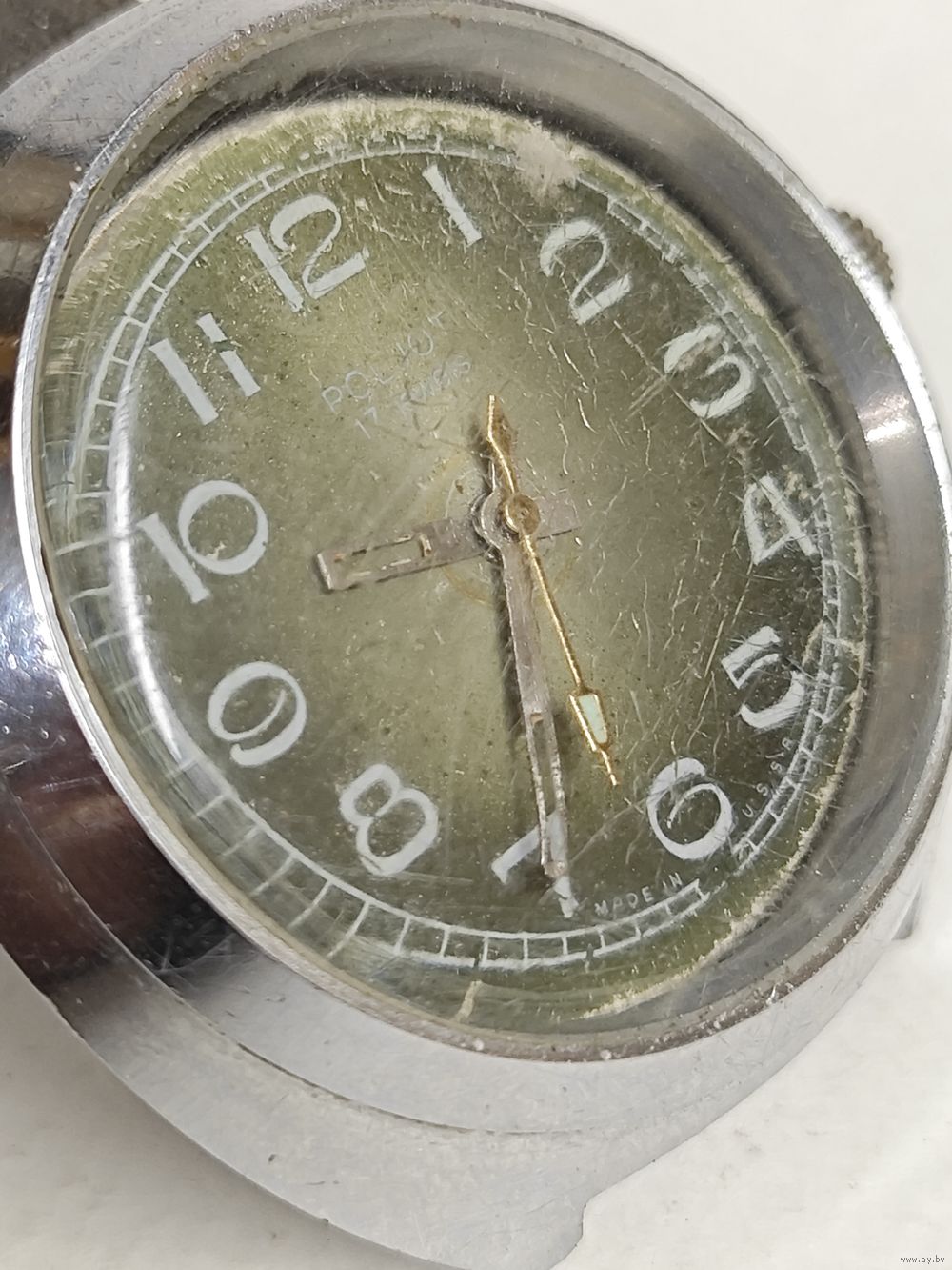 Механические часы "Poljot" ,СССР. На ходу,не обслуживались.Стекло целое,но если смотреть под наклоном,то как будто в микротрещинах,на фото видно. Циферблат уставший.Перед тем как сделать ставку изучите фото.