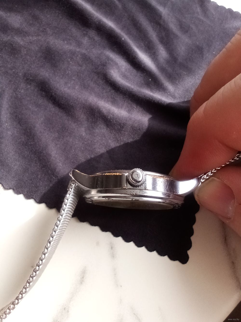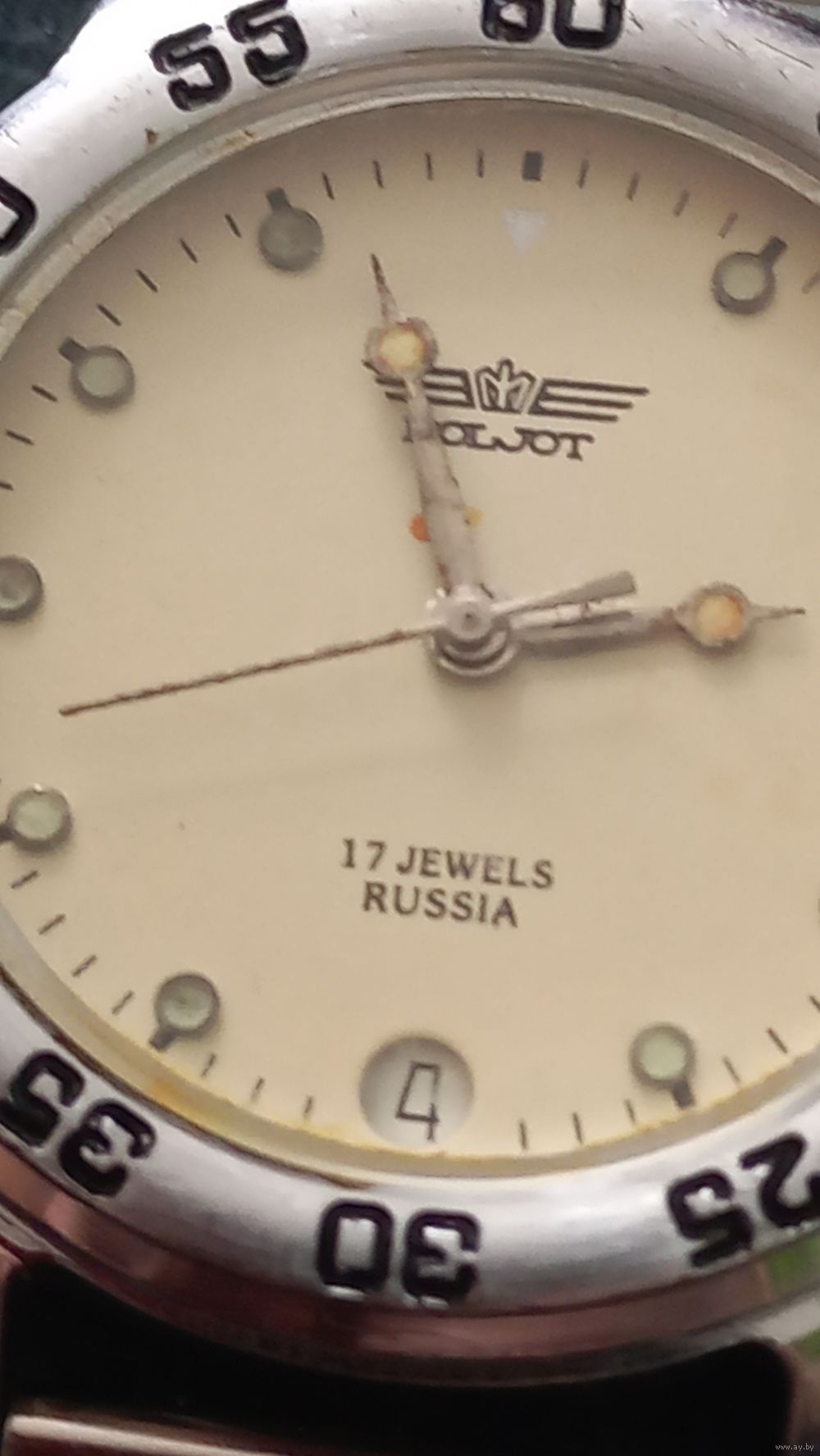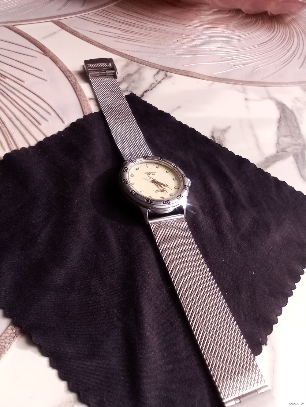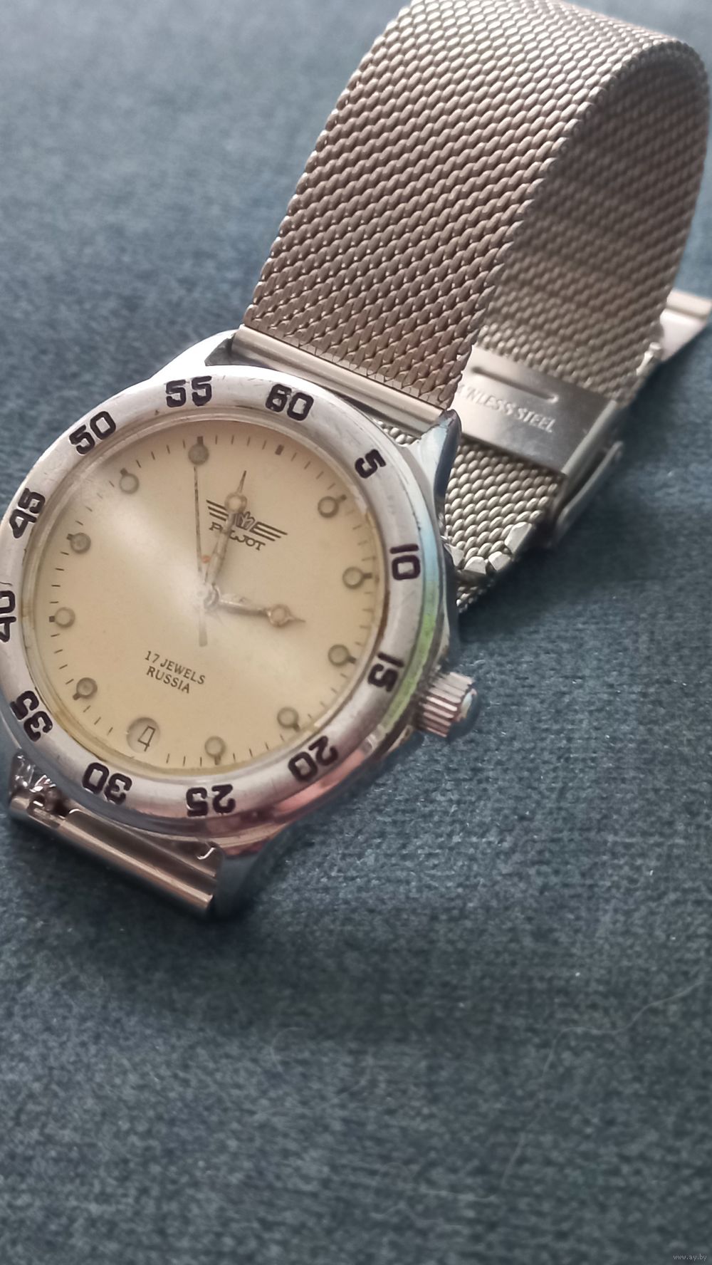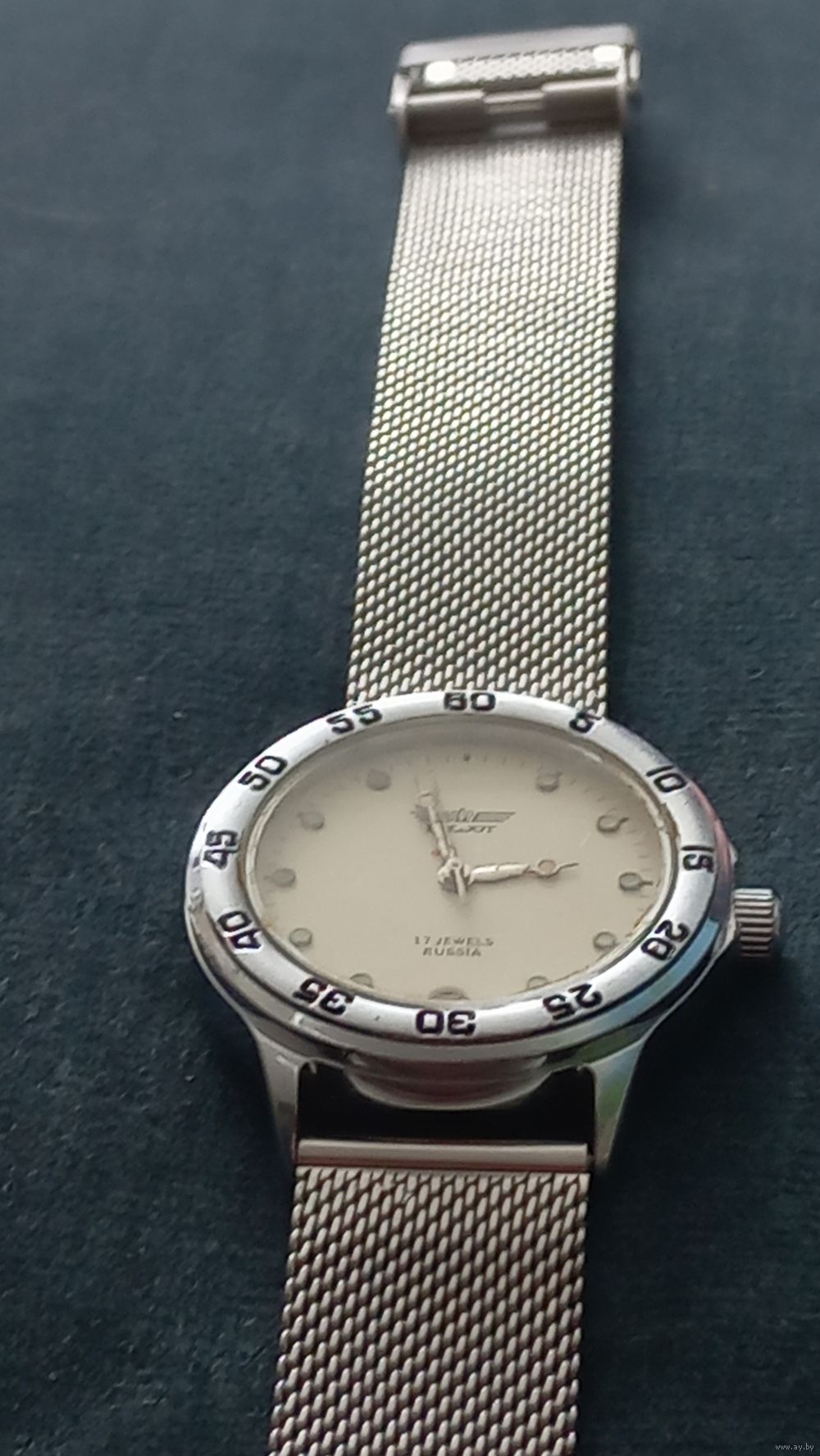Красивые компактные механические часы "Полет", с металлическим браслетом. На ходу, календарь работает.