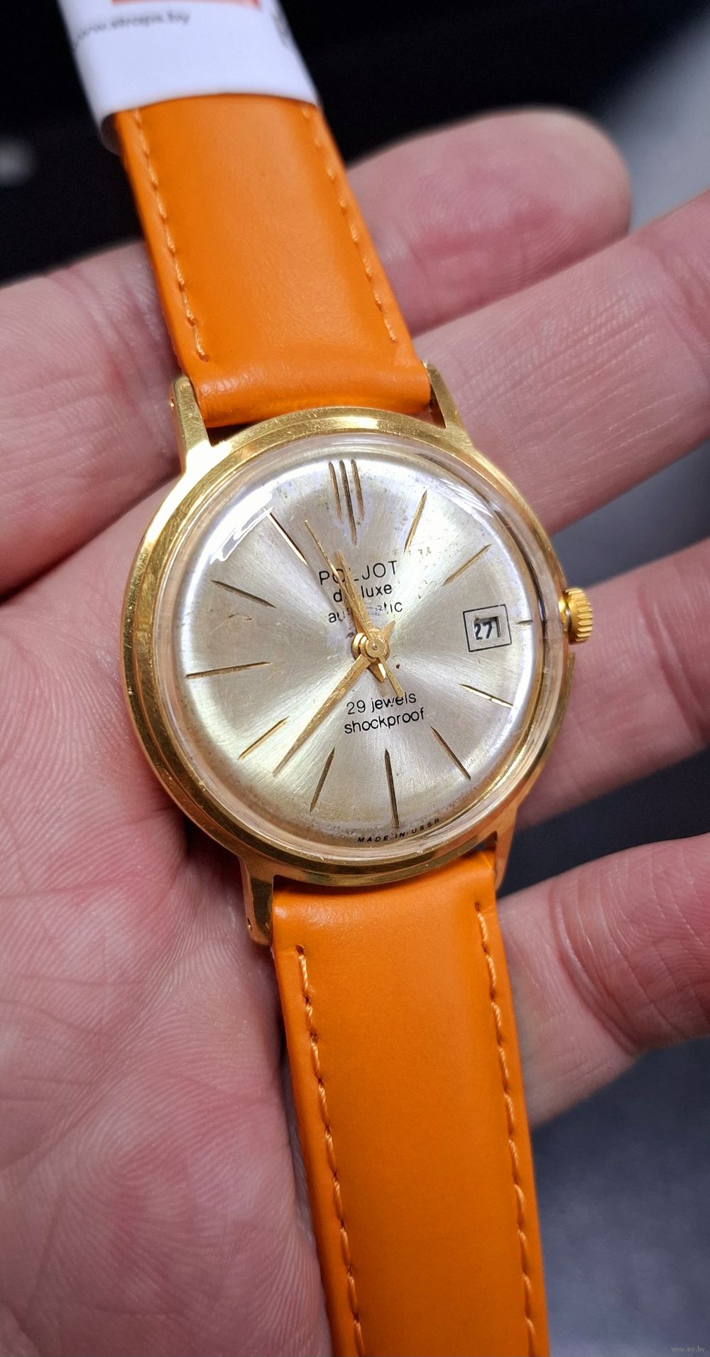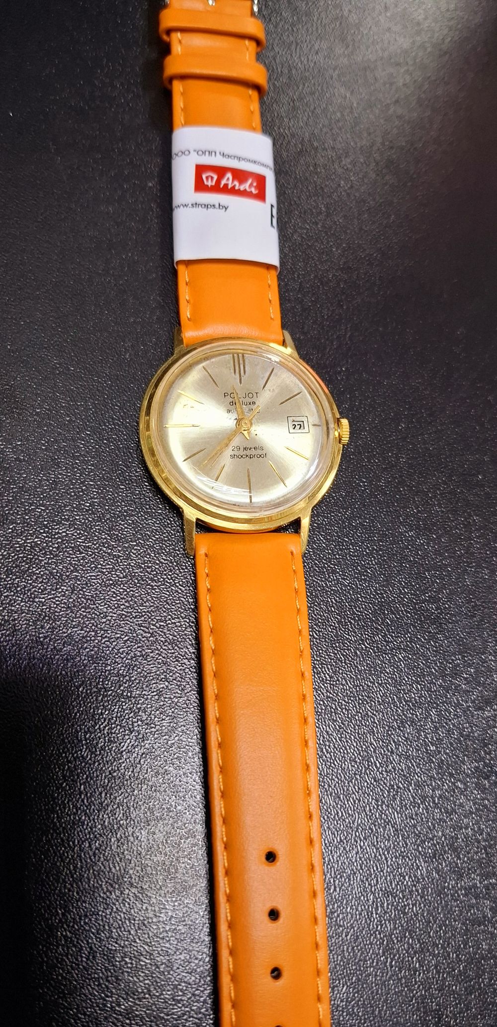 Часы Poljot de luxe 29 Полет делюкс 29 камней костюмник тонкие. Au 20. Идут. Бывает становятся. Точность не проверял. Без репассажа. Обслуживание не завредит. Состояние на фото.Ремешок если без торга.
