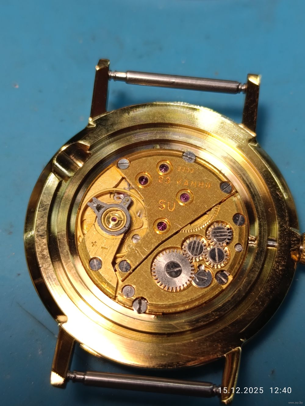 Это часы-хомаж. Часы после реставрации. Обслуженный оригинальный советский механизм 1970-ых —1980-ых годов и новые корпус/циферблат (современные). Визуально часы почти как новые.