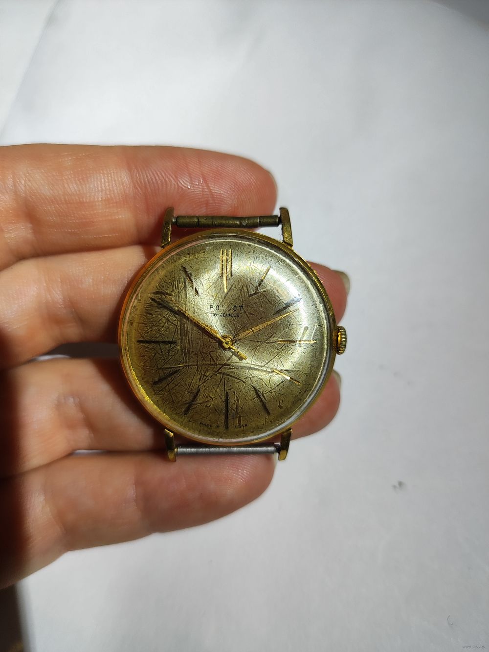 На ходу (чуть спешат на 3-4 мин в сут.). Циферблат на 4- балла из 5(по моёй оценке). Состояние на фото.(царапины и трещины стекла).