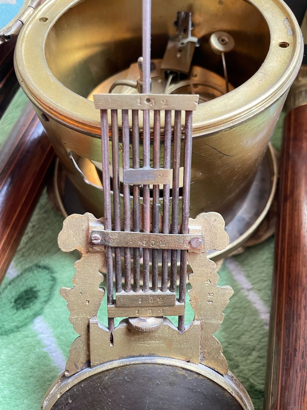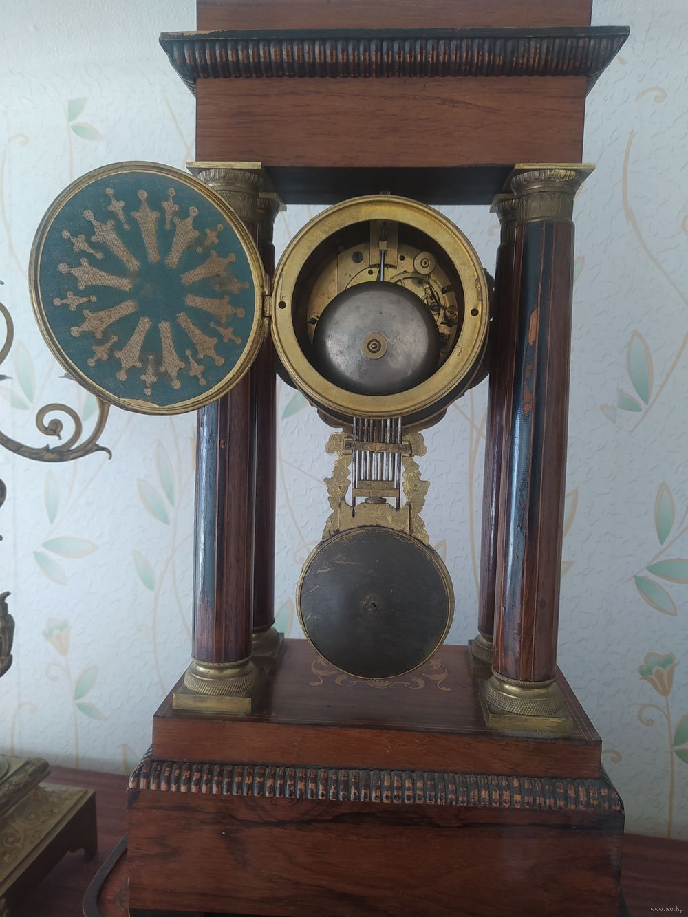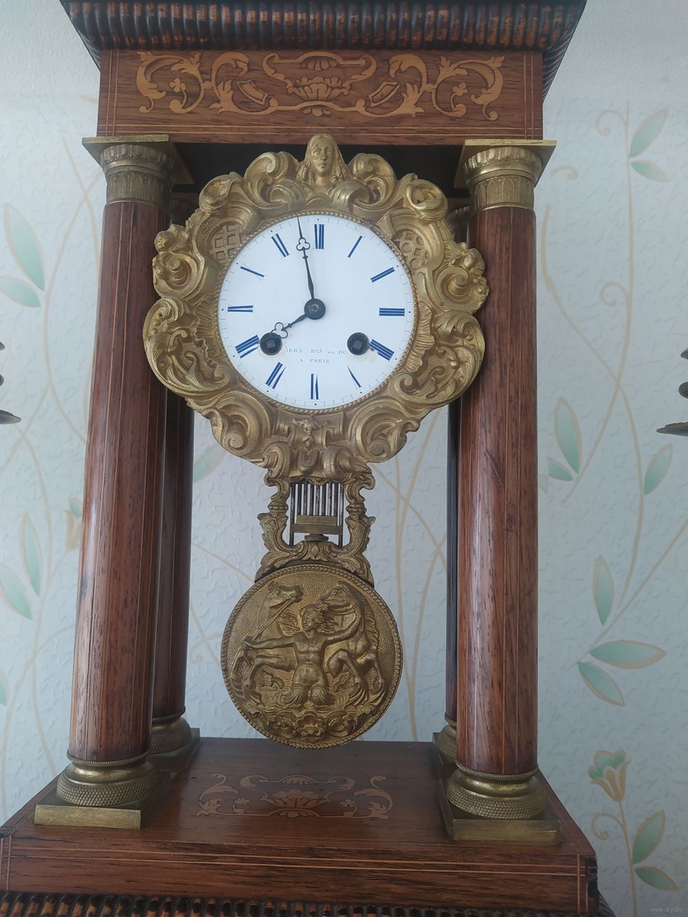 Исправны и на ходу, часовой и получасовой бой, инкрустация шпоном, бронзовые вставки, маятник и окантовка циферблата бронзовое литье, механизм и маятник родные, везде клейма, без вмешательств, ключ есть, но не родной Часы без подставки 46 см., с подставкой +9 см.
