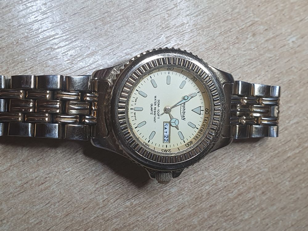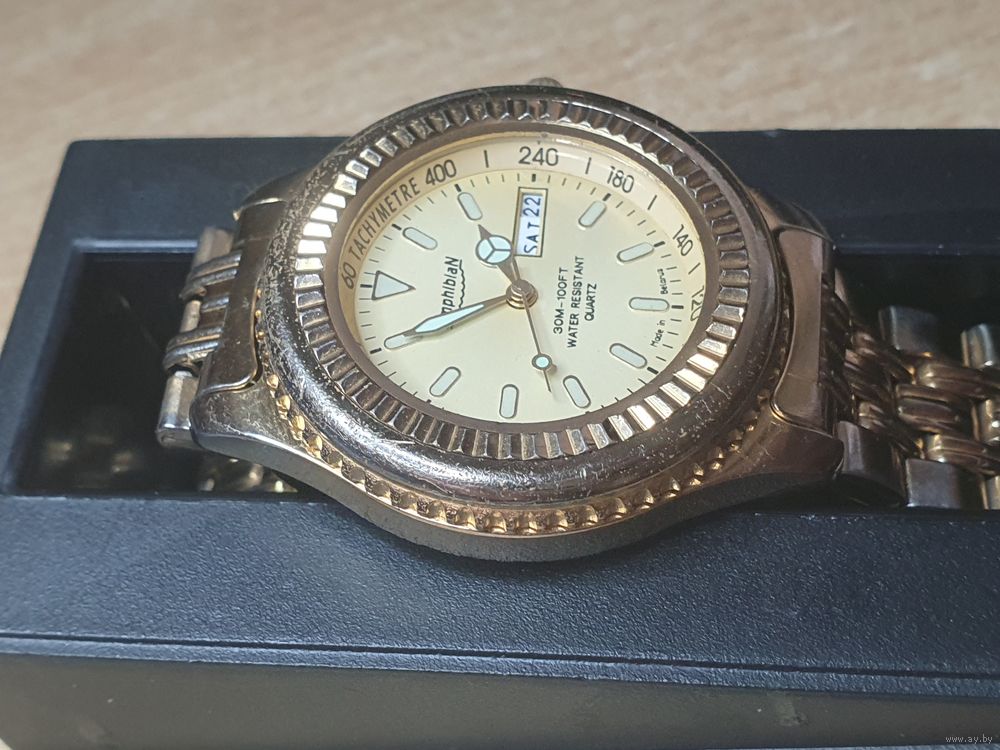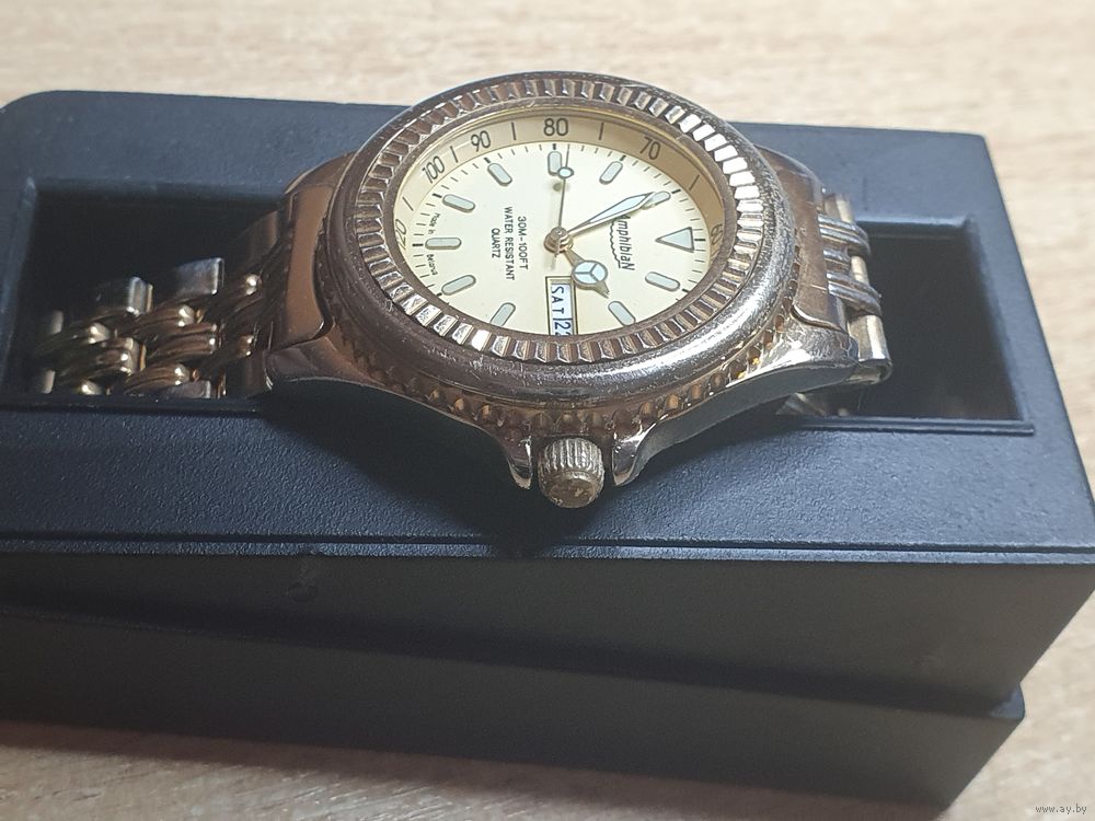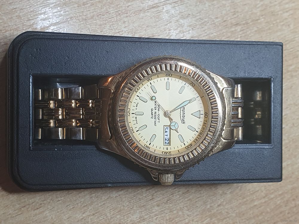 Часы позолоченные Луч Амфибия Au2.5. С коробкой и документами. На ходу, бывает стрелка останавливается и дергается на месте, возможно нужно заменить батарейку