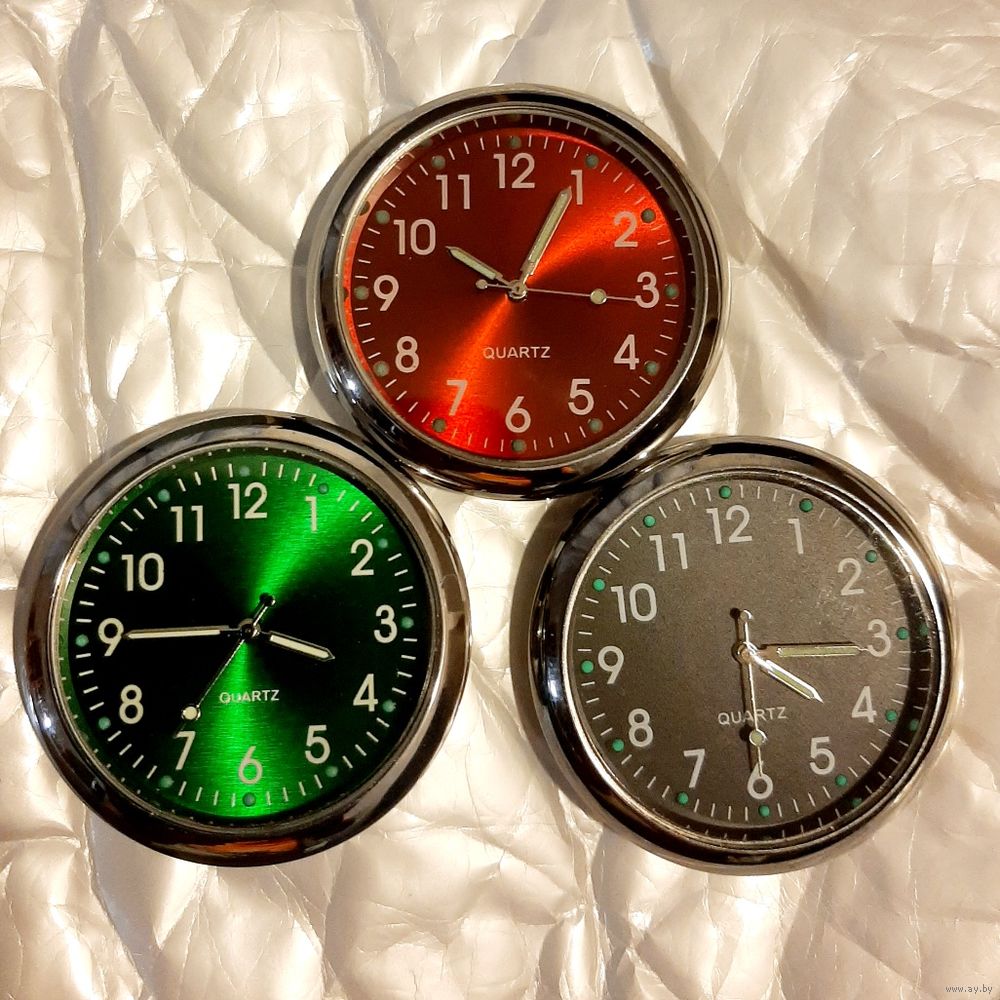 Часы приклеивающиеся, в квартире, d 40мм. Красивые.Синие, черные, серые, зеленые, красные. Есть 6 штук. Стрелки-белые. Ширина-8мм. Двусторонний скотч в комплекте. Люминисцентный циферблат. Удобные в быту, автомобиле. Можно прикрепить в кухне, в комнате, над столом, на стенку, на панель приборов в автомобиль. С батарейкой. Кварцевые. AG4, SSUO377- батарейка. Кнопка настройки времени-с обратной стороны под цифрой 6. 14р/1шт. Могу выслать Европочтой или обычной почтой наложенным платежом.