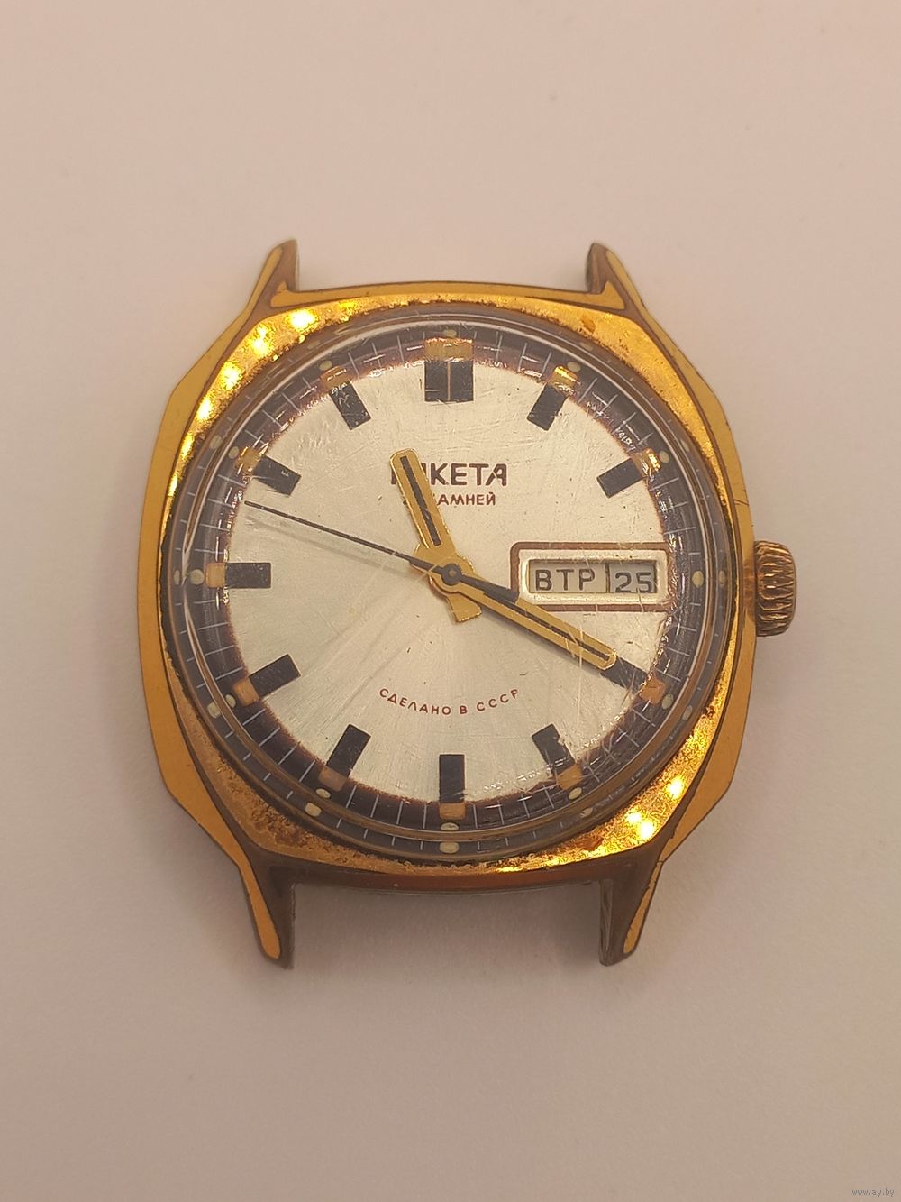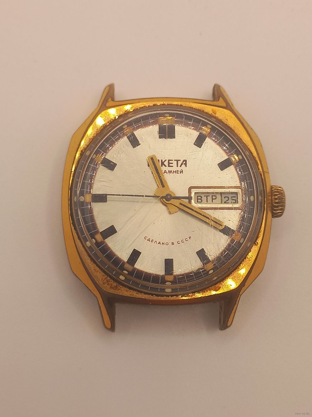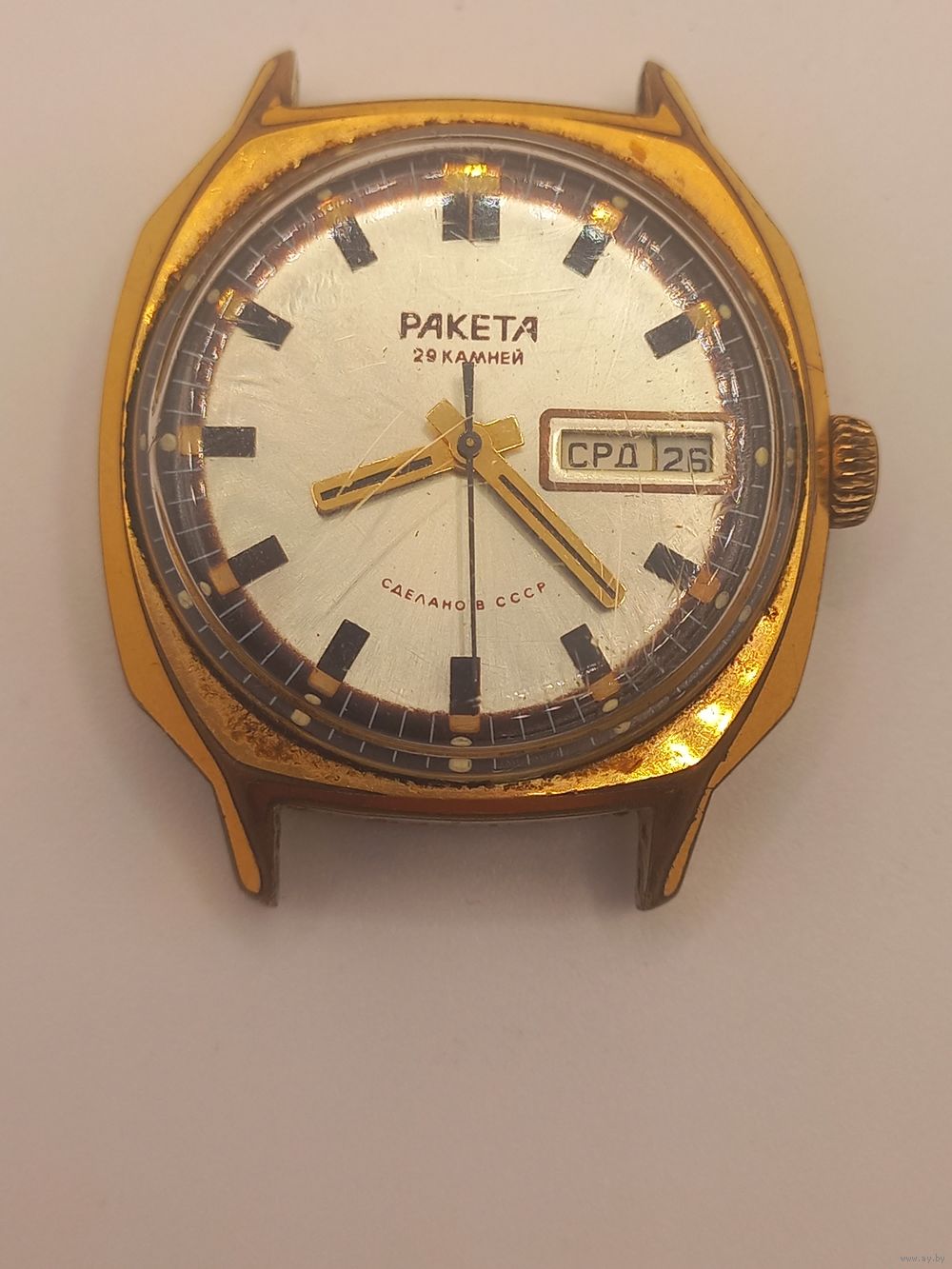Часы Ракета автоподзавод СССР. 29 камней. На ходу. Позолота AU 5. Календарь рабочий.