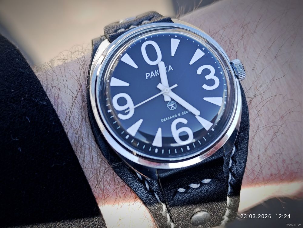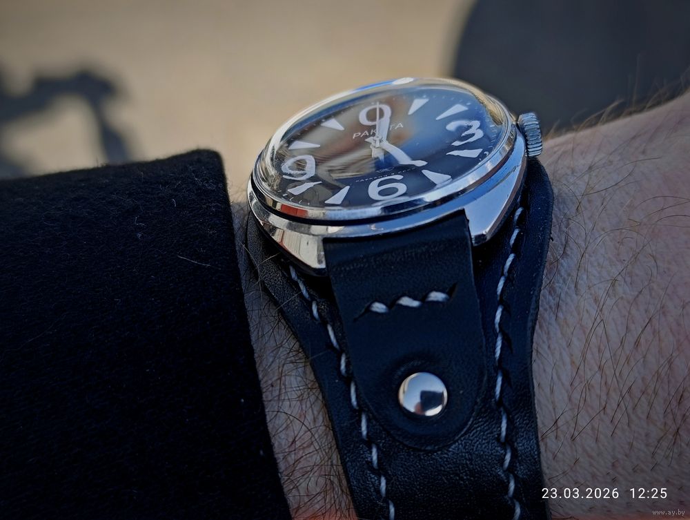 Для часов был изготовлен ремешок напульсник из натуральной кожи, который придаёт часам особый вид .