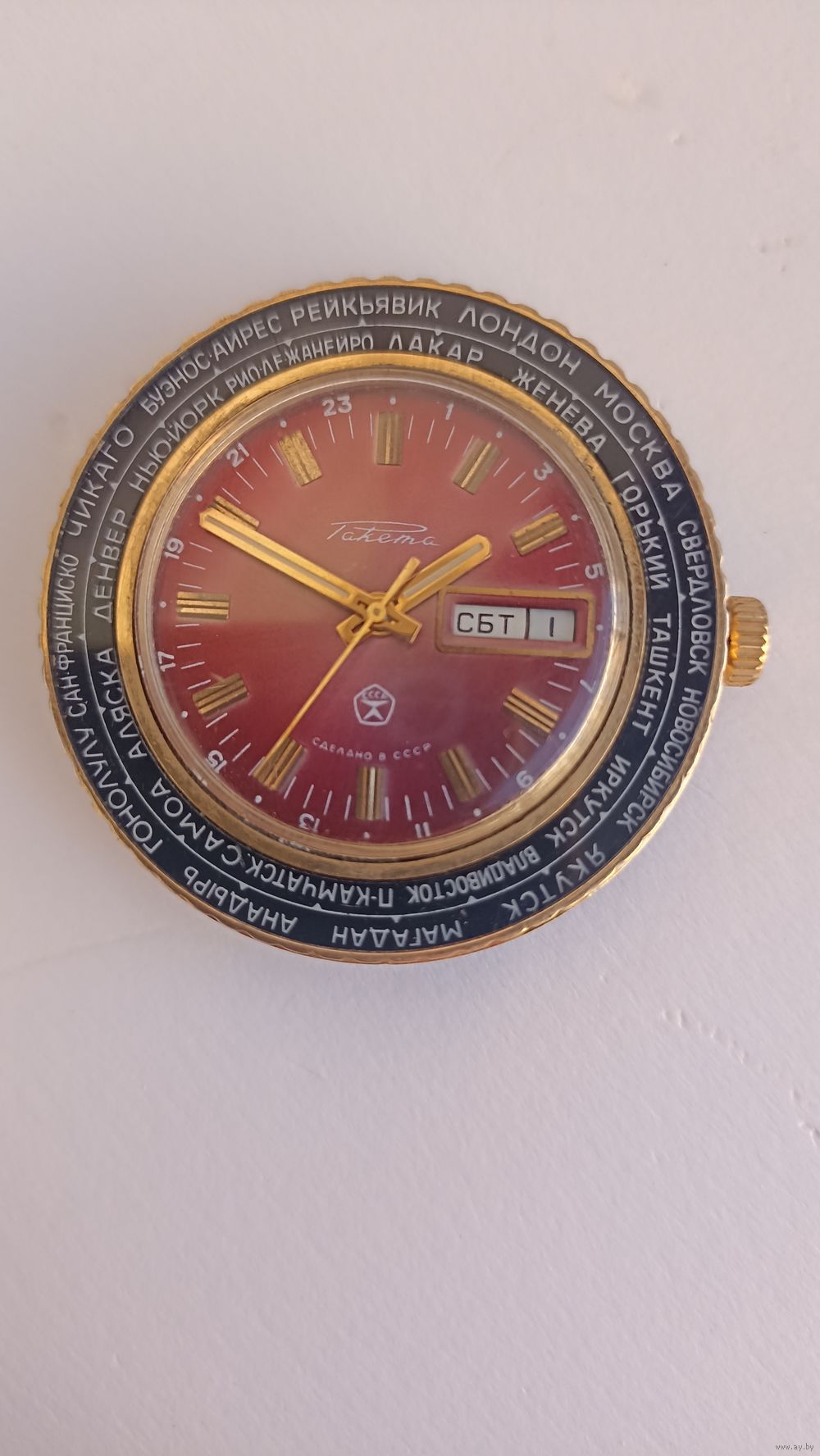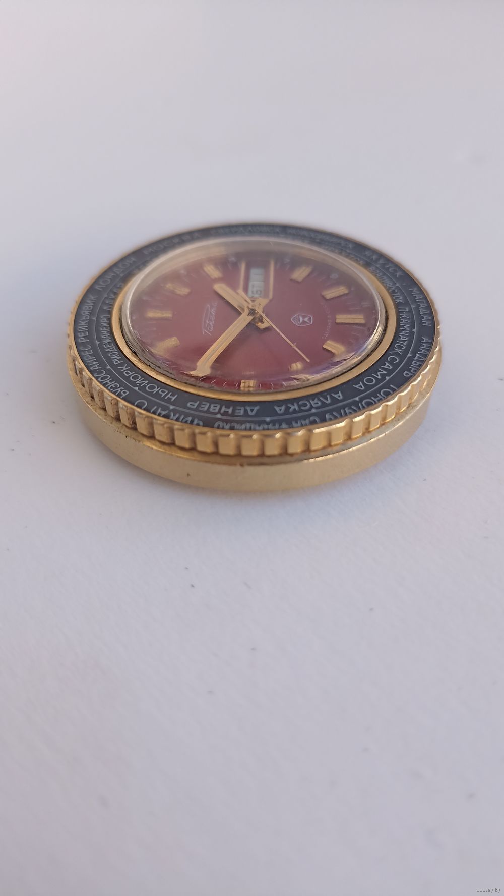Отличное состояние корпуса стекла и циферблата, золочение сохранено на 99 процентов, что крайне редко встречается на больших часах. Часы на ходу, календарь работает