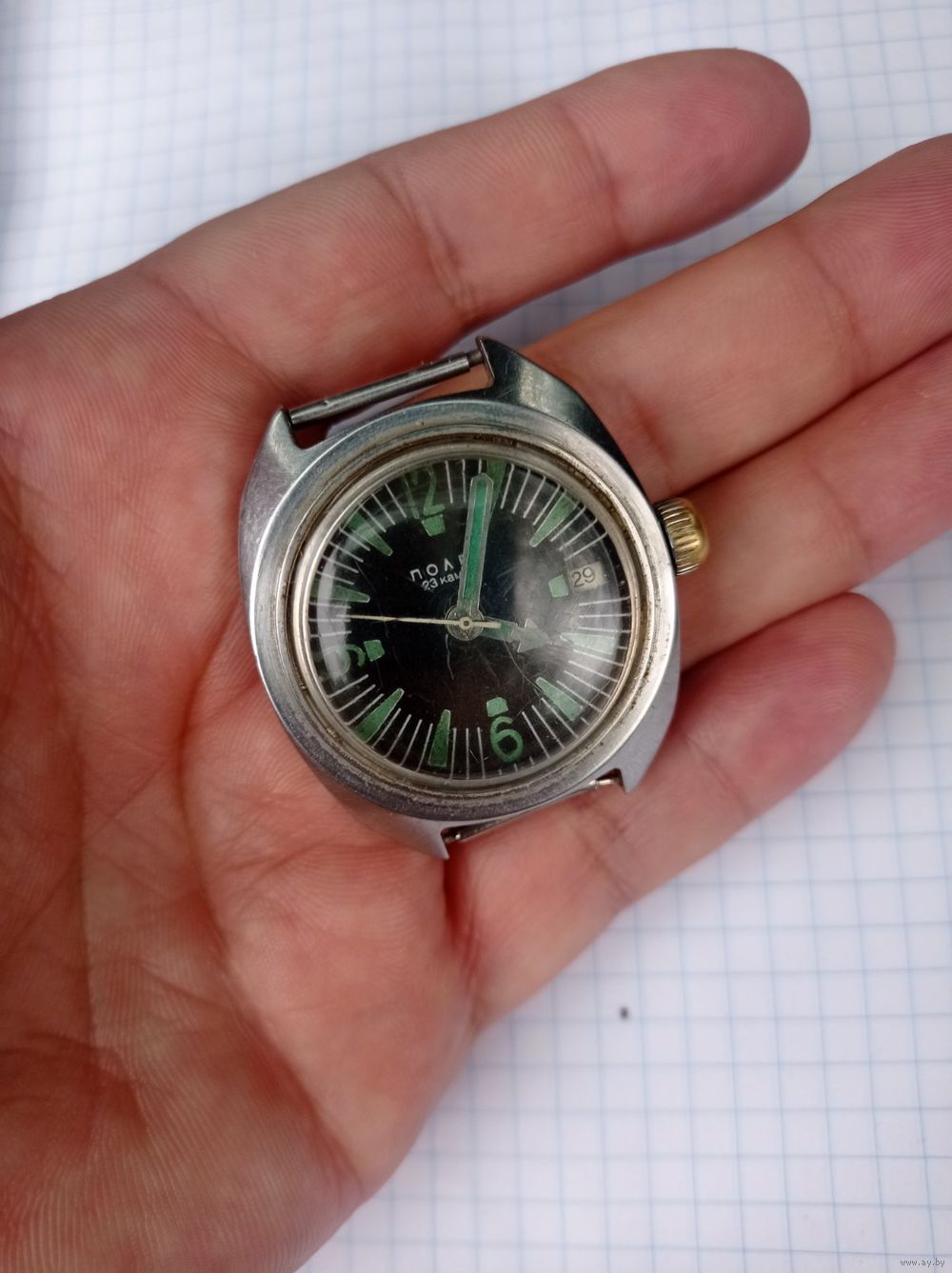 Завёл идут, точность хода непрлверял, внешне состояние отличнейшее (по фото), безеля нету, смотрите другие мои объявления много часов в продаже..
