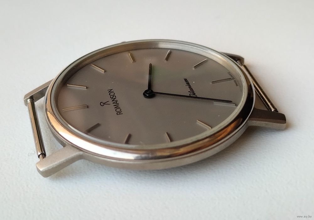 Дизайн: Классический минимализм с тонкими часовыми метками и стрелками. На циферблате присутствует логотип бренда и надписи «Titanium» и «Swiss Quartz».