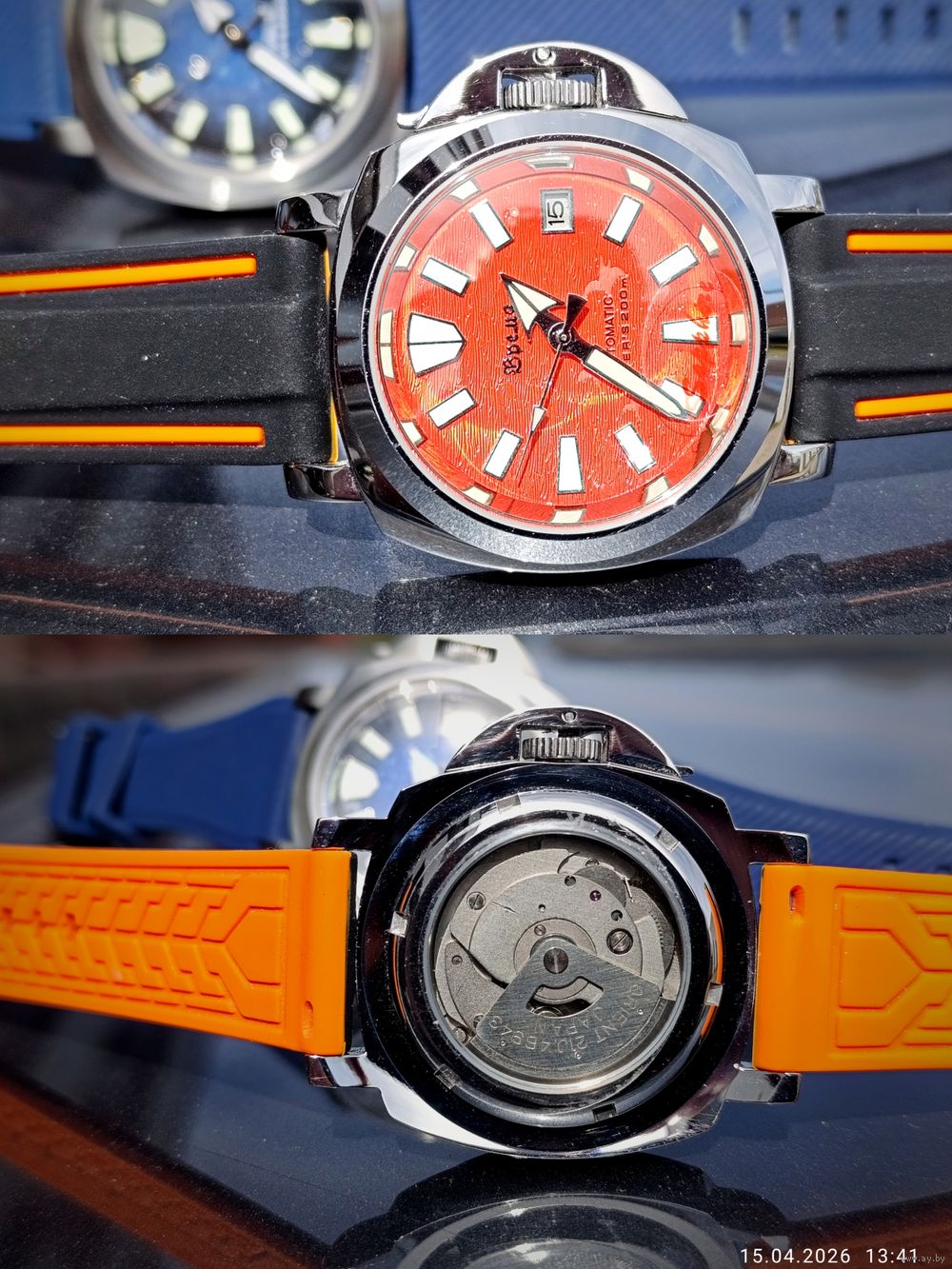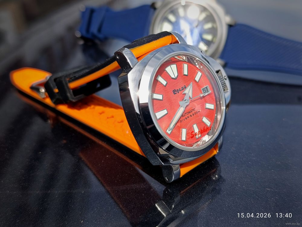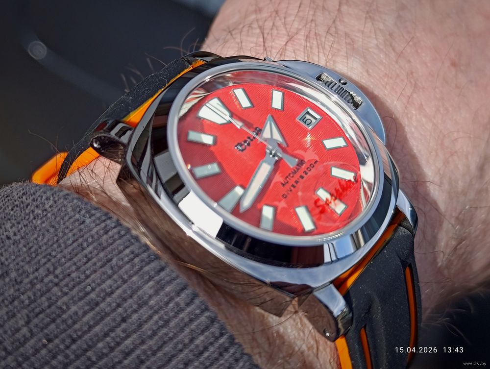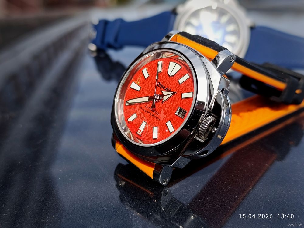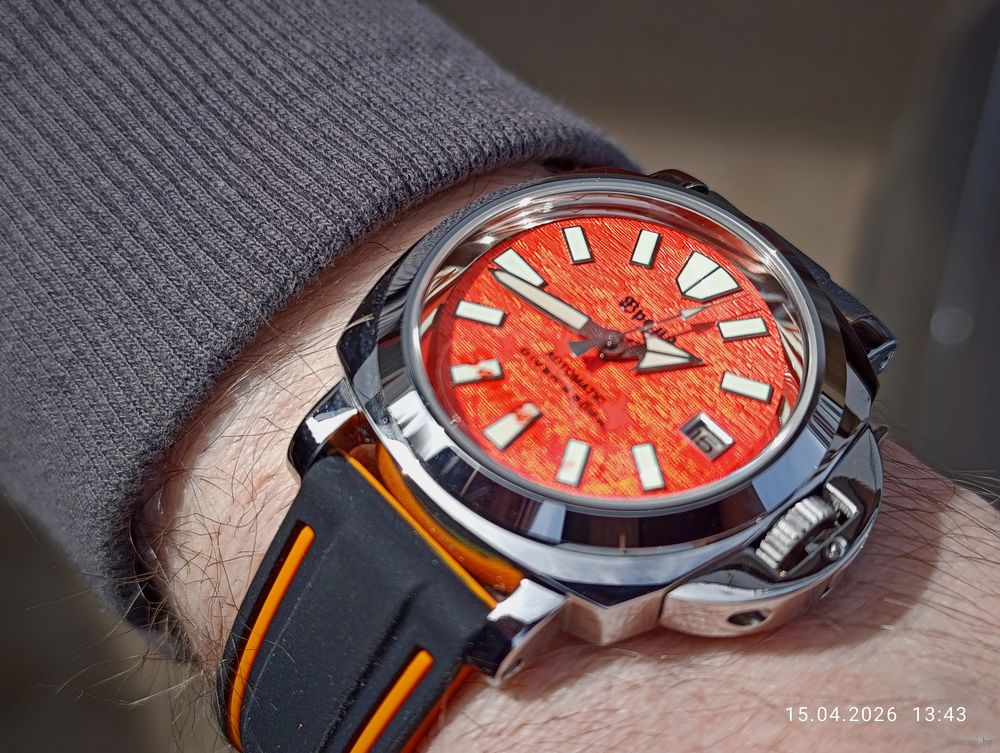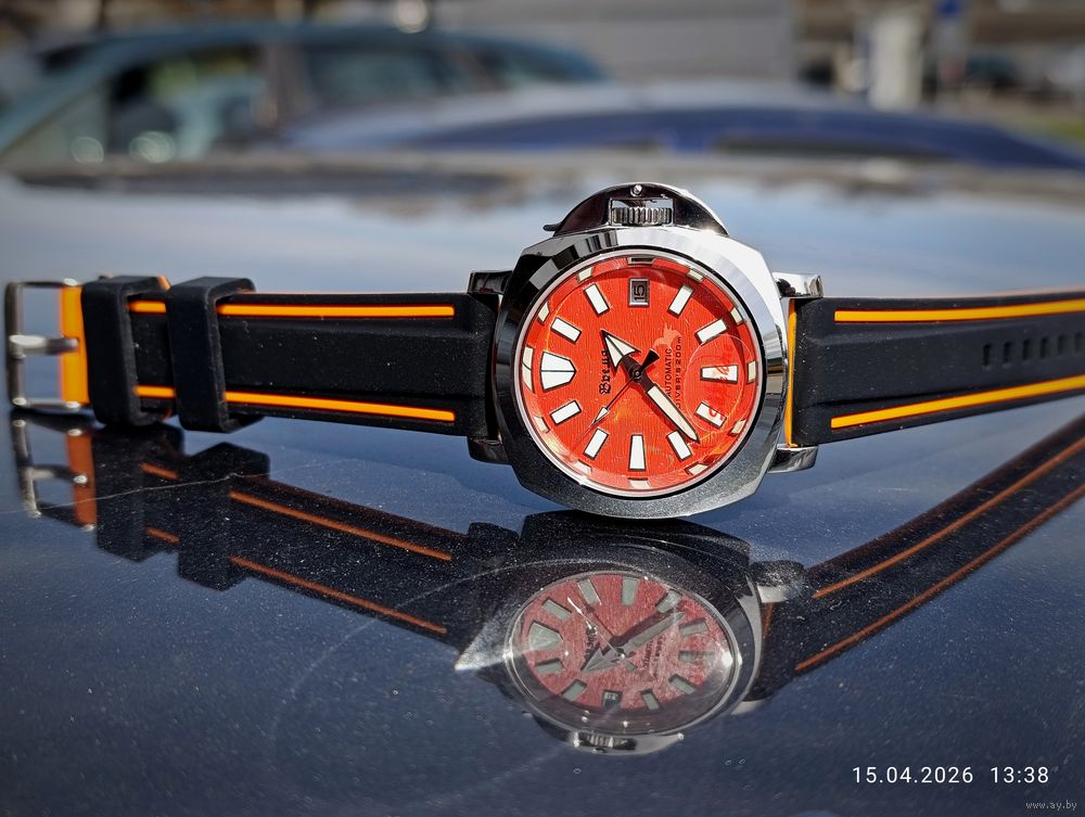 Оранжевый гильошированный циферблат с датой календаря .