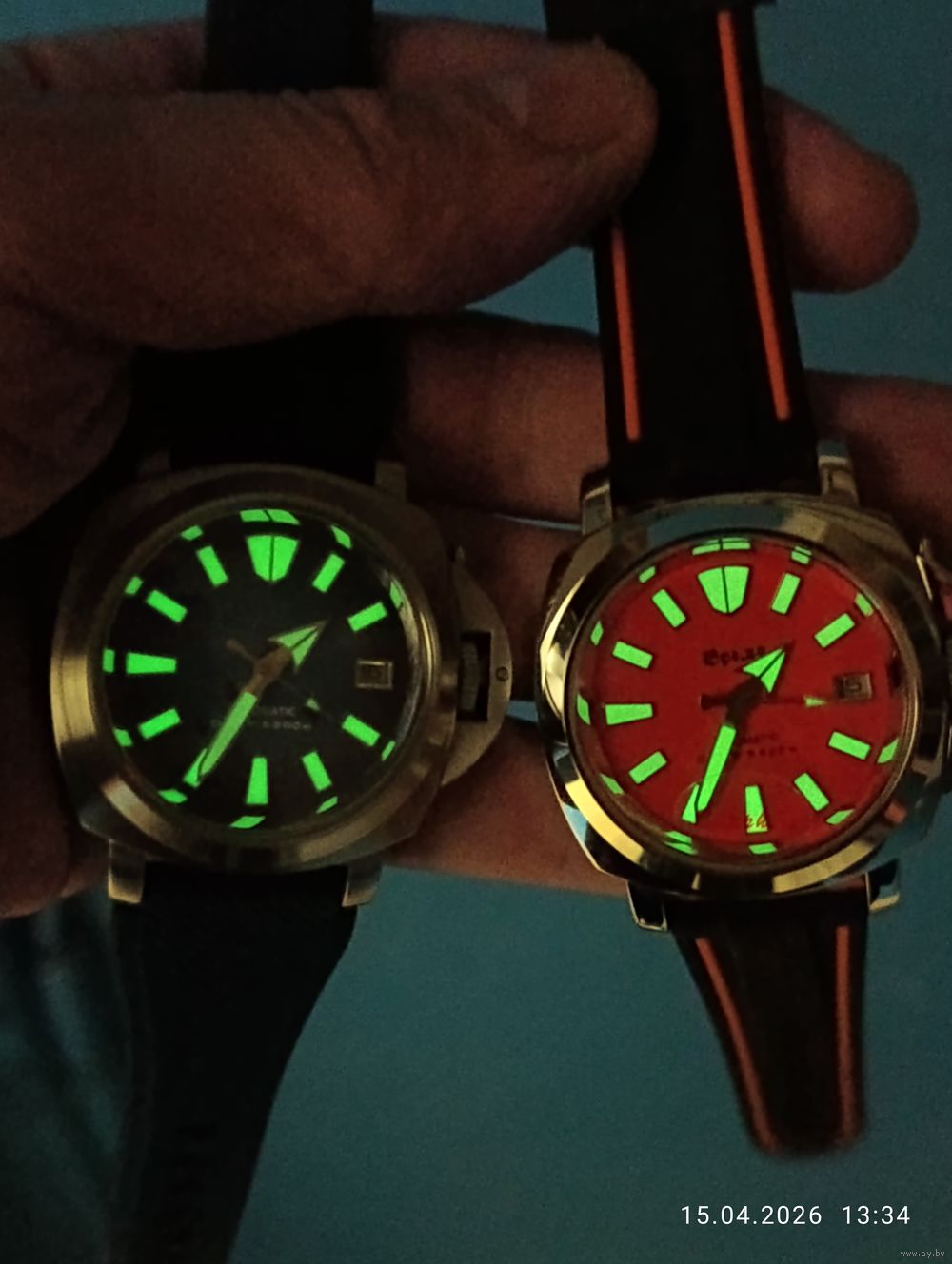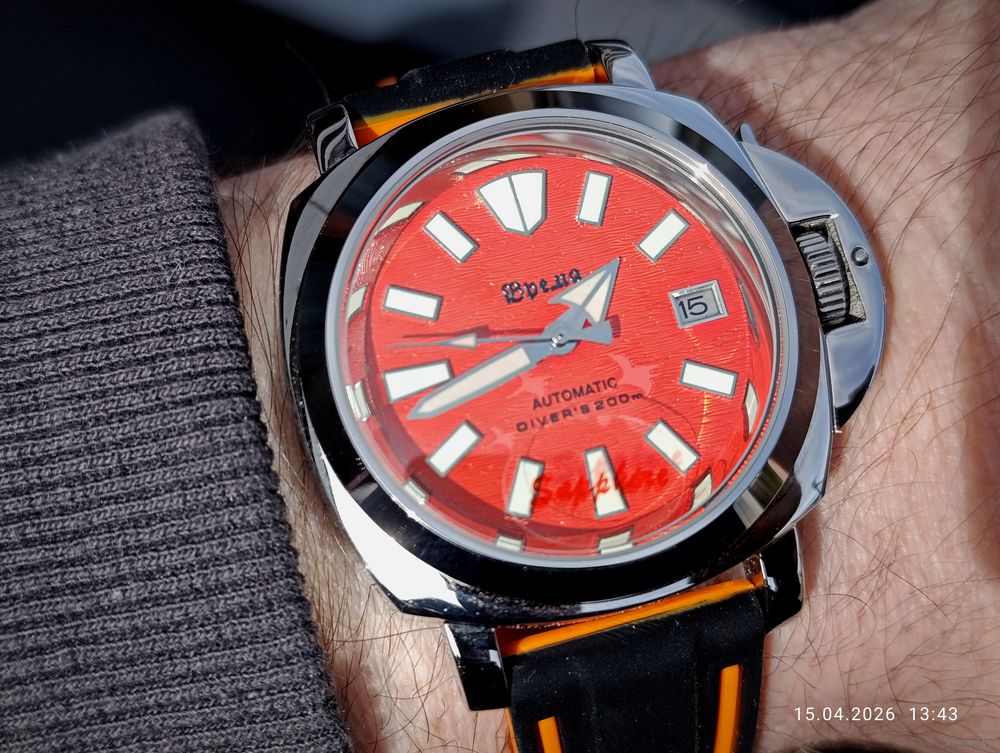Яркий люминофор на стрелках и циферблате.
