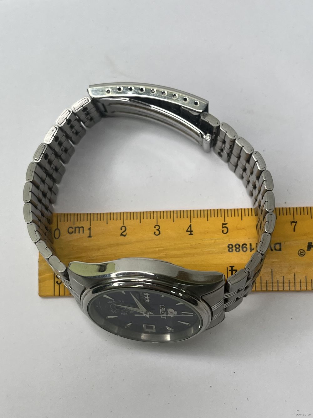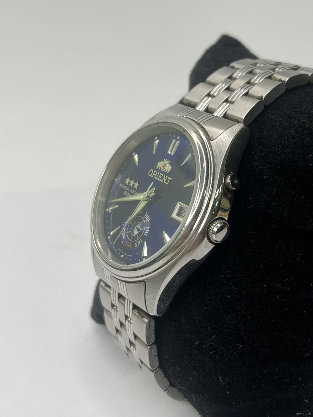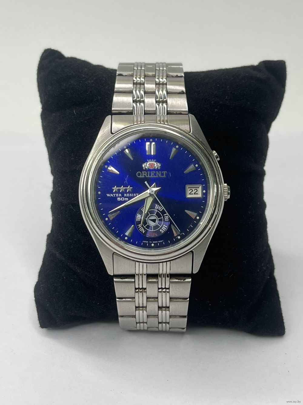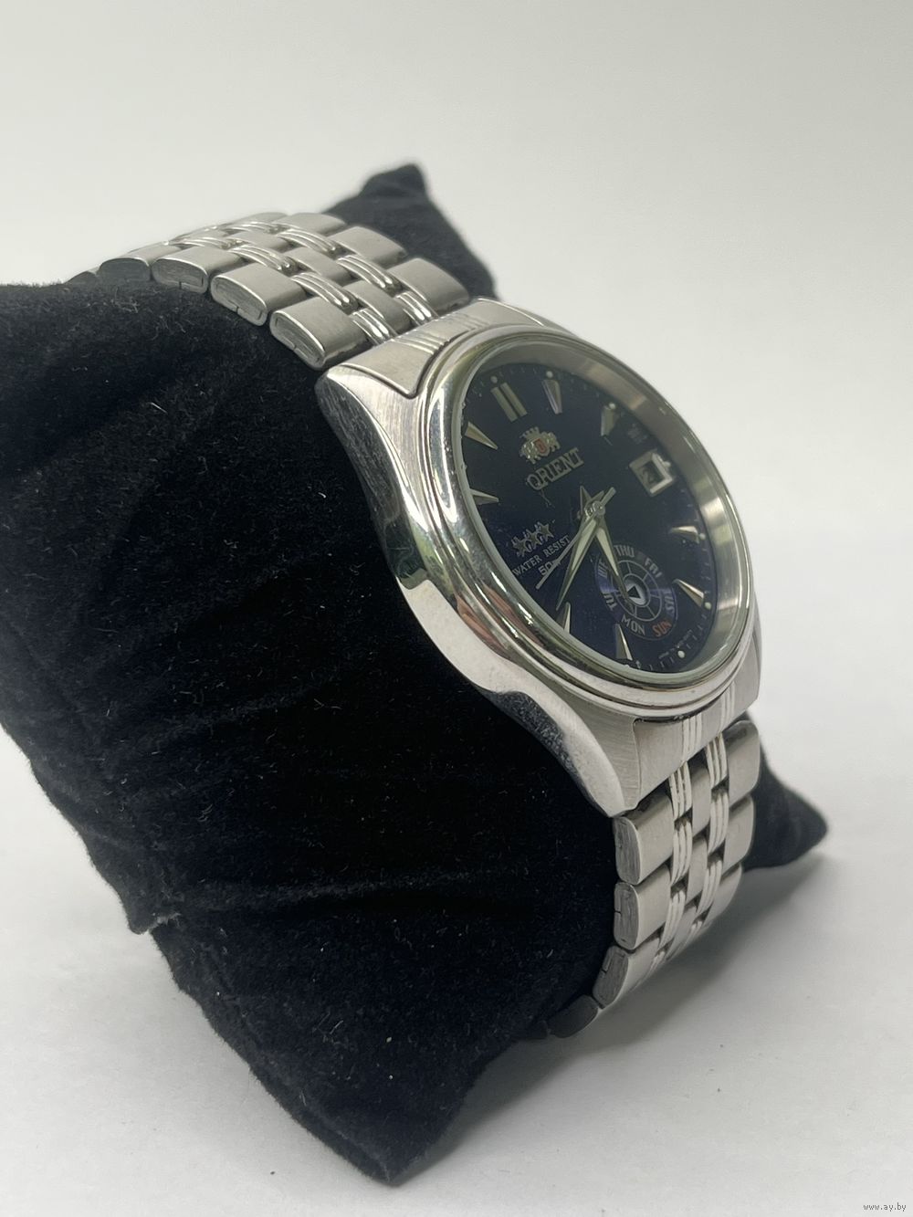 Модель отличается надежным механизмом без ручного завода, водонепроницаемостью, металлическим браслетом и характерной функцией отображения даты/дня недели, переключаемой второй кнопкой.