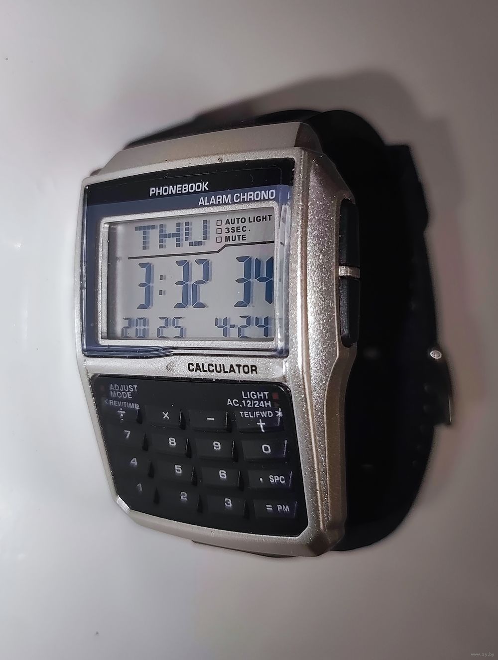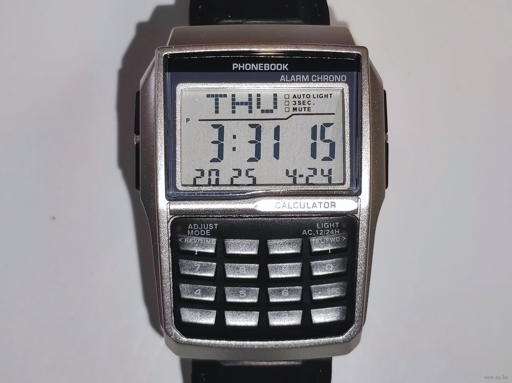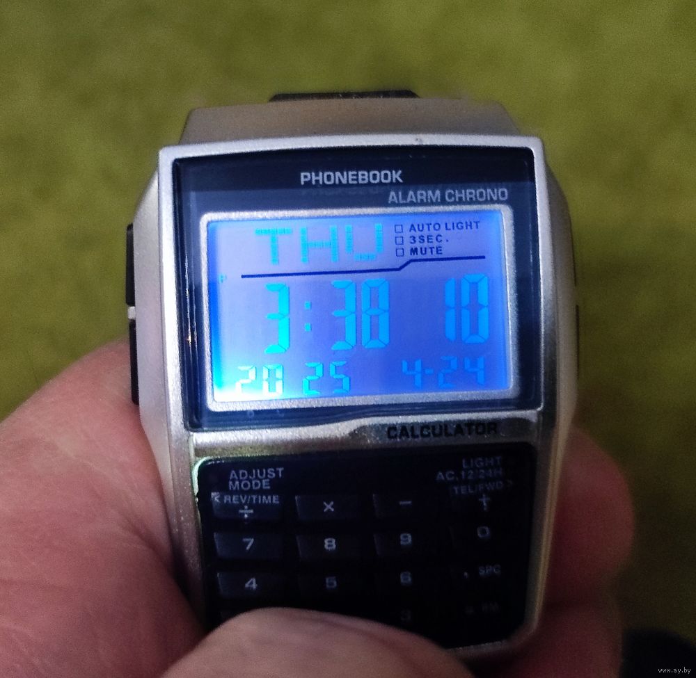 Хорошая реплика стильных часов 80-х, будильник, секундомер, подсветка, дата, ремешок силиконовый.