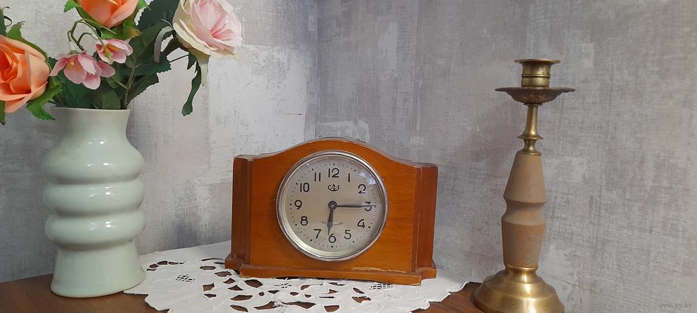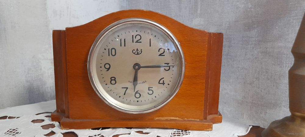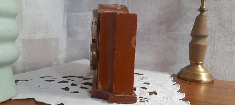 Часы хорошо функционируют, т.е. рабочие. Полная комплектность. Стекло в идеале. Есть недочеты по корпусу, но не критичны. всё на фото. Р-ры : дл.21см. выс.13см. шир.5см.