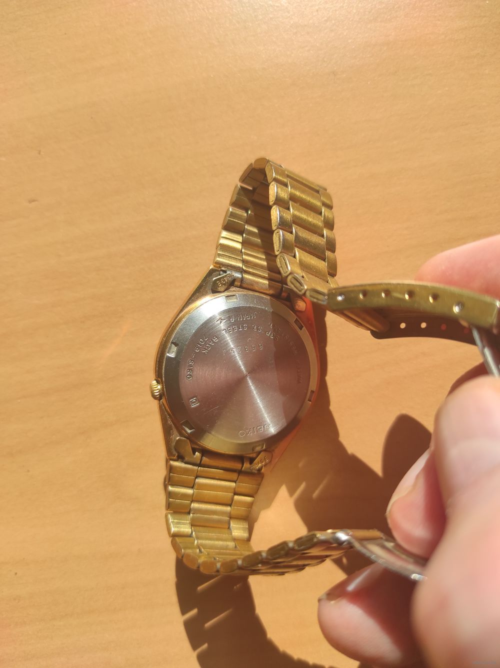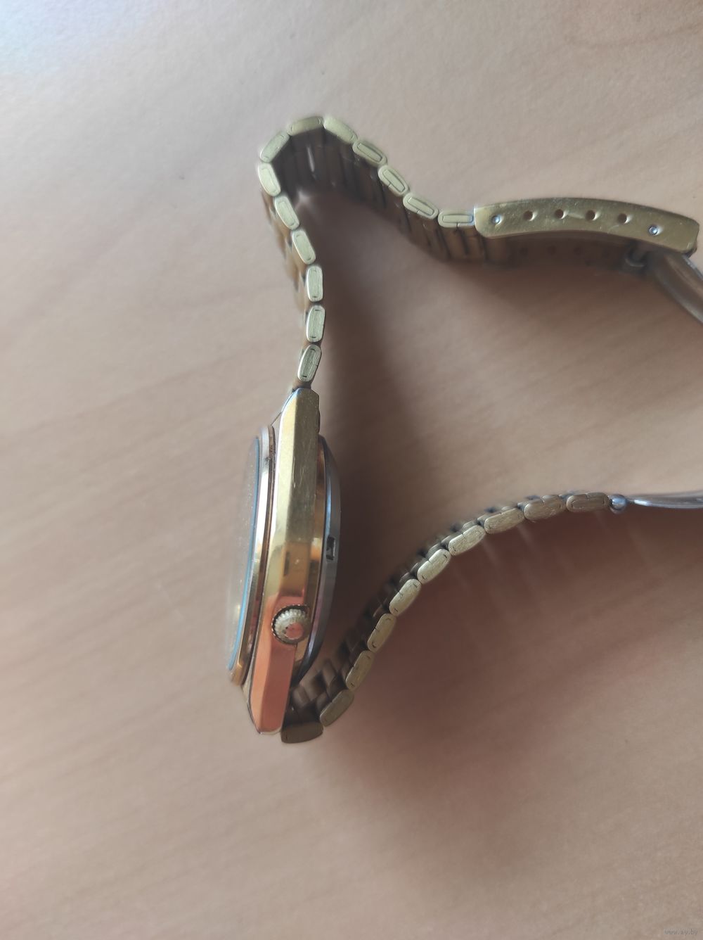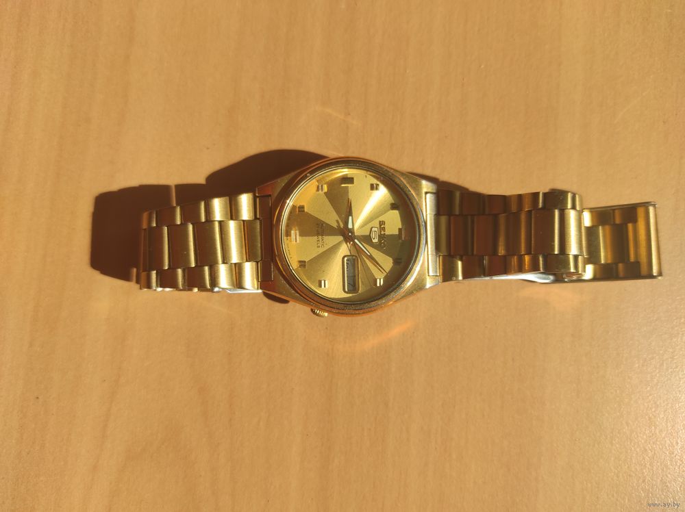 Часы Seiko 5. Модель "Золото в золоте", так называют модель на зарубежных сайтах Механические, автомат. Оригинал. Внешнее состояние- практически идеал. Работают, но не корректно выставляется день недели, перещелкивается посередине. Дни недели - на английском и арабском. Покупались в 90-х.в Варшаве. Не Китай. Один хозяин, документы не сохранились, выкинул.