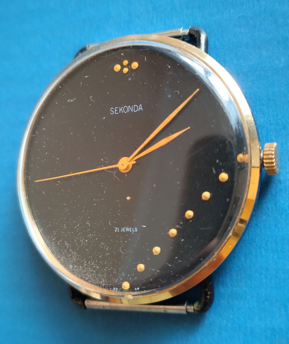 Бренд Sekonda был создан в 1966 году специально для экспорта советских часов на западные рынки (в частности, в Великобританию). Данная модель выпускалась в 1970-х годах и считается коллекционным экземпляром из-за своего нетипичного дизайна.