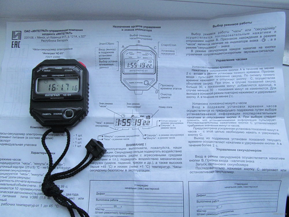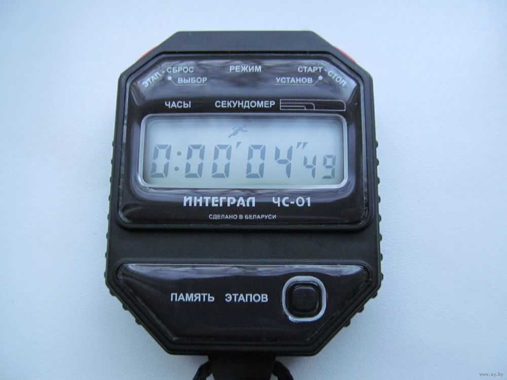 Часы-секундомер электронные "Интеграл ЧС-01" - электронный прибор с автономным источником питания и жидкокристаллическим индикатором (ЖКИ).