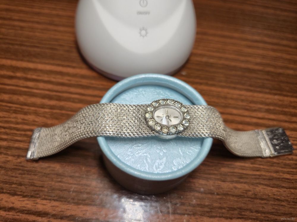 | Швейцария, раритет. Рабочие. Стекло без сколов и трещин. Вокруг циферблата фианиты. Браслет винтаж также серебрянный. | |