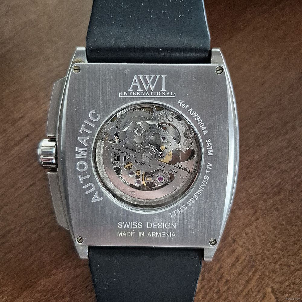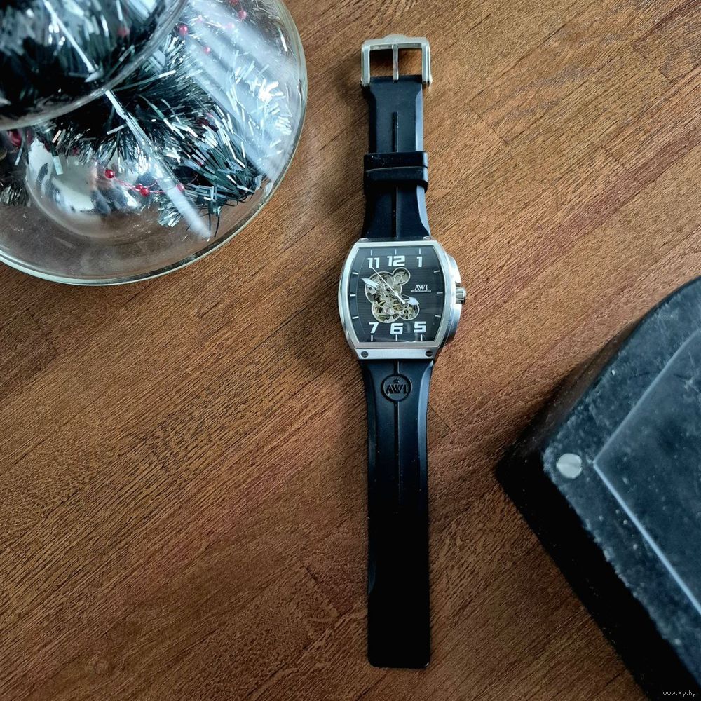 Часы (скелетон) AWI механический. Армения. Родная коробка (состояние коробки среднее - софттач "лезет"). Выпуск 2019 г. Хорошее состояние.
