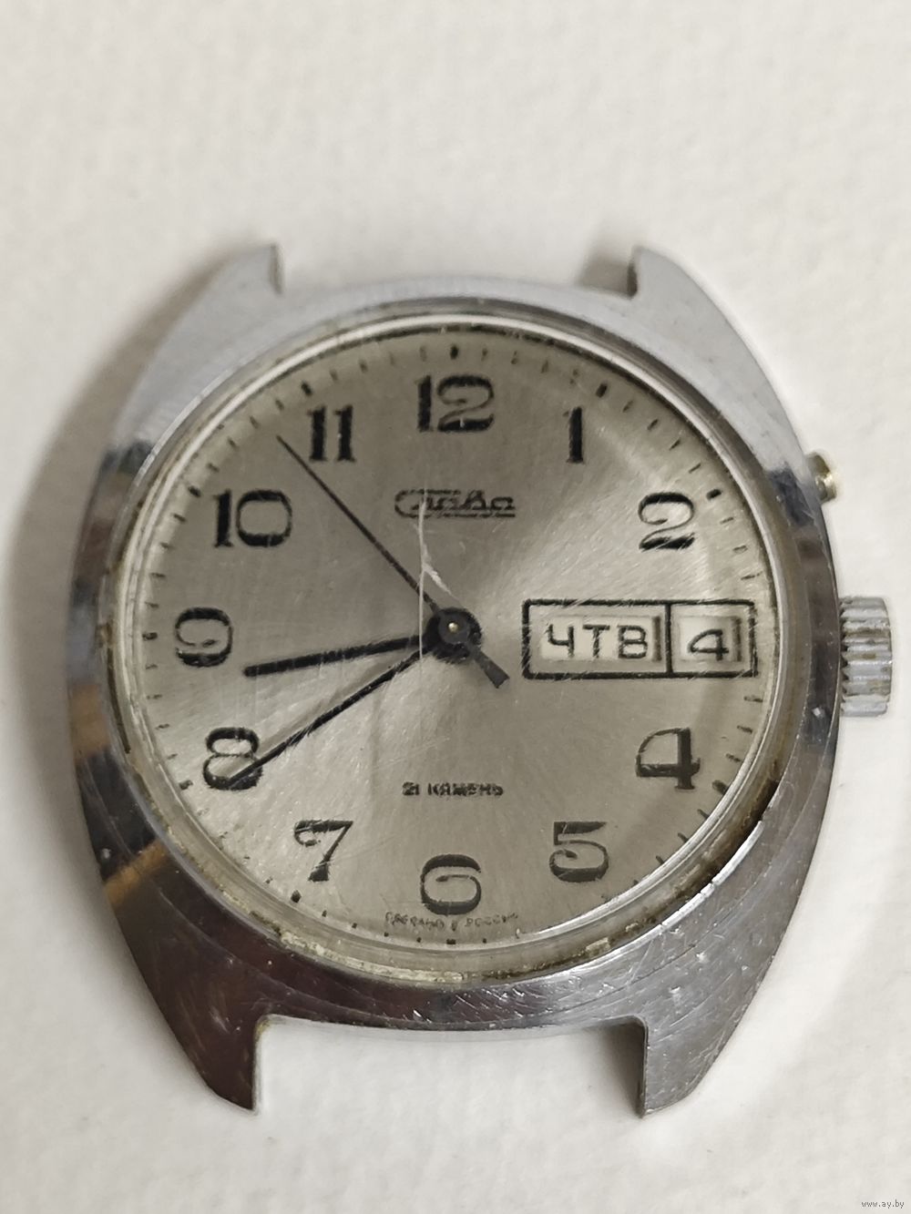 Часы "Слава". Состояние на фото. Идут,точность хода не проверял. Календарь рабочий, переключается. Стекло с трещиной. Перед тем как сделать ставку изучите фото.
