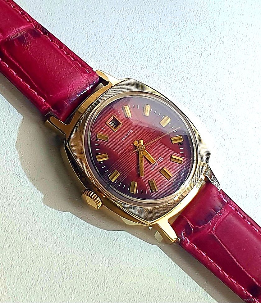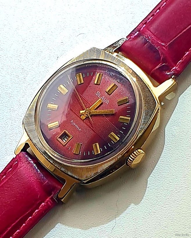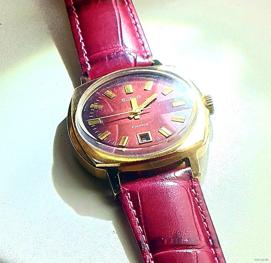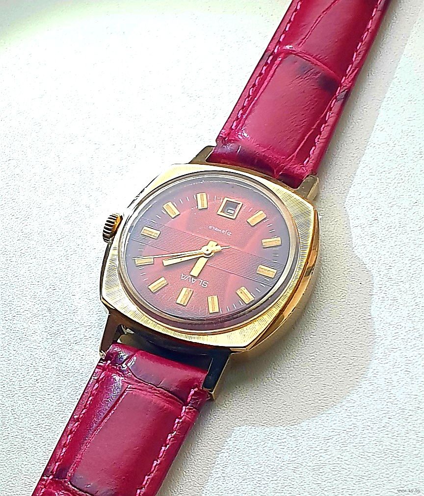 Часы SLAVA ау20 экспортная модель , не частые, с нижним календарём, прекрасный коллекционный сохран, позолота без потерь . На точном ходу . В комплекте с нов. рем.