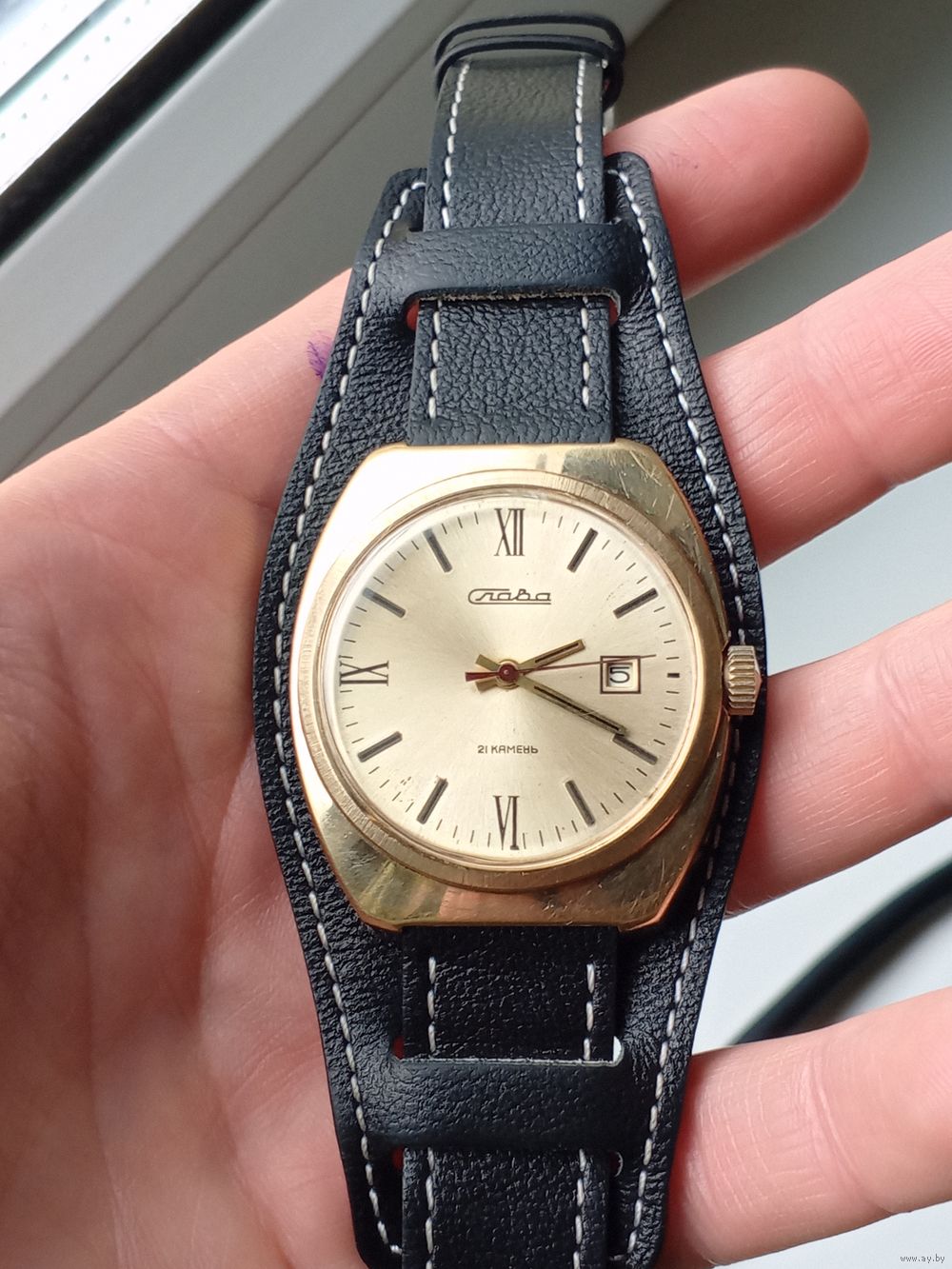 В отличном состоянии, на уверенном ходу, позолота без потерь, кожаный ремешок в комплекте, отправлю белпочтой после предоплаты в течение 3 дней.