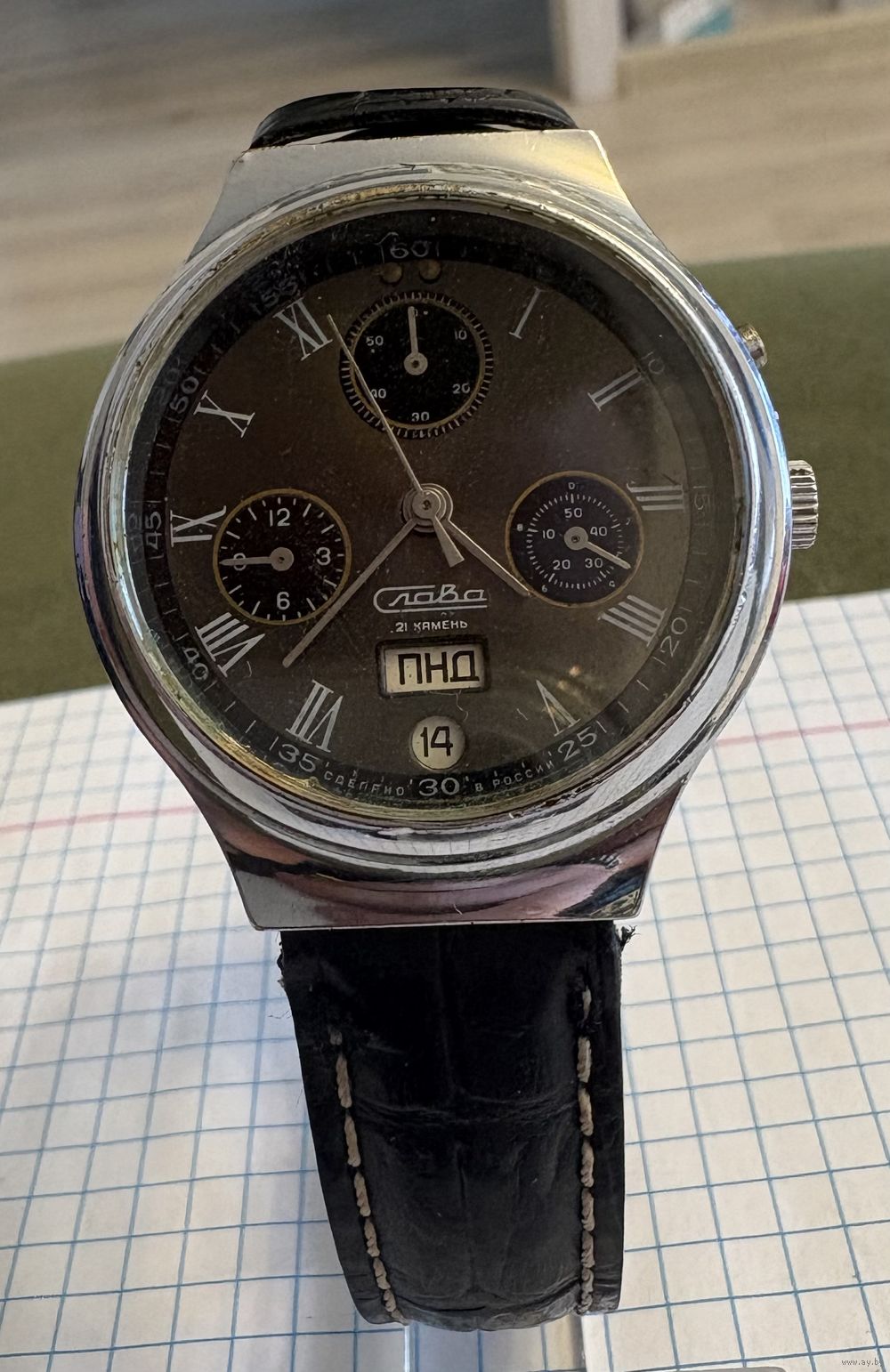 Мужские механические часы Слава с псевдохронографом (дополнительные циферблаты декоративные). Редкие .