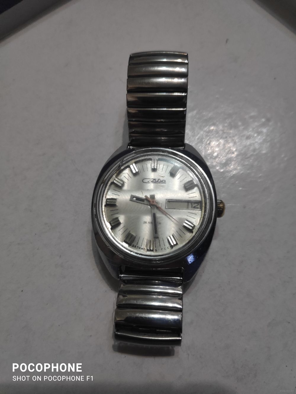 Сделано в СССР, 26 камней, переливающийся циферблат, на уверенном ходу, растягивающийся браслет. Смотрите другие мои лоты.