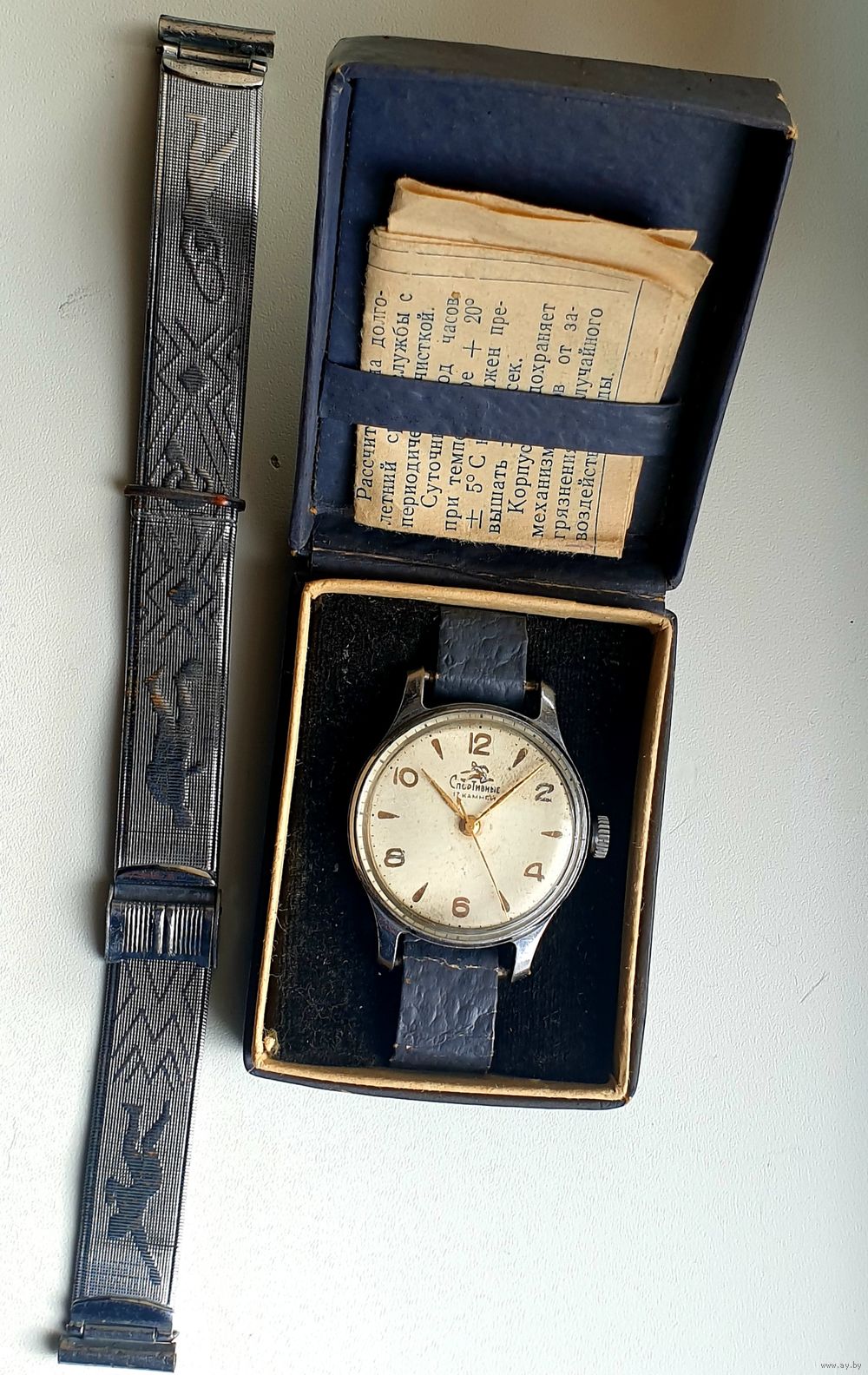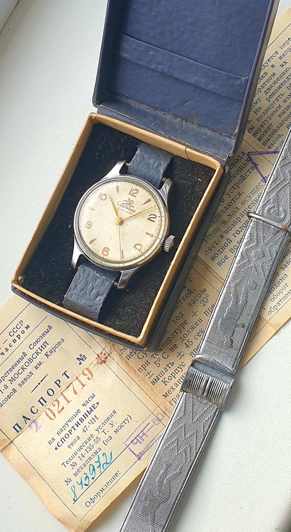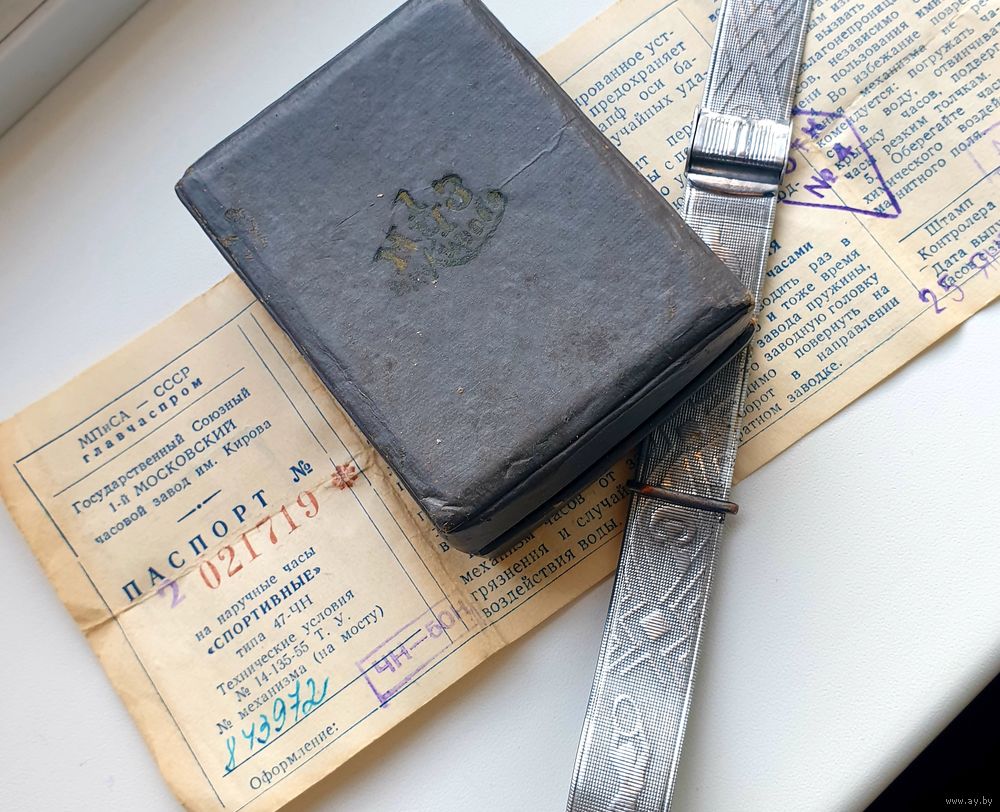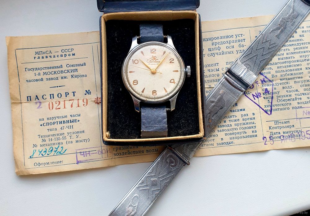 Часы СССР 1мчз, Спортивные - бегун, функция стоп - секунда, на ходу, в полном комплекте, родная коробочка , паспорт с номерами соответствующим данным клеймам в часах механизма , и плюс очень редкий браслет тех лет 58 года, Динамо - Спартак. Очень часто продавали их именно с этими часами . Не упустите шанс приобрести в коллекцию один из интереснейших лотов.