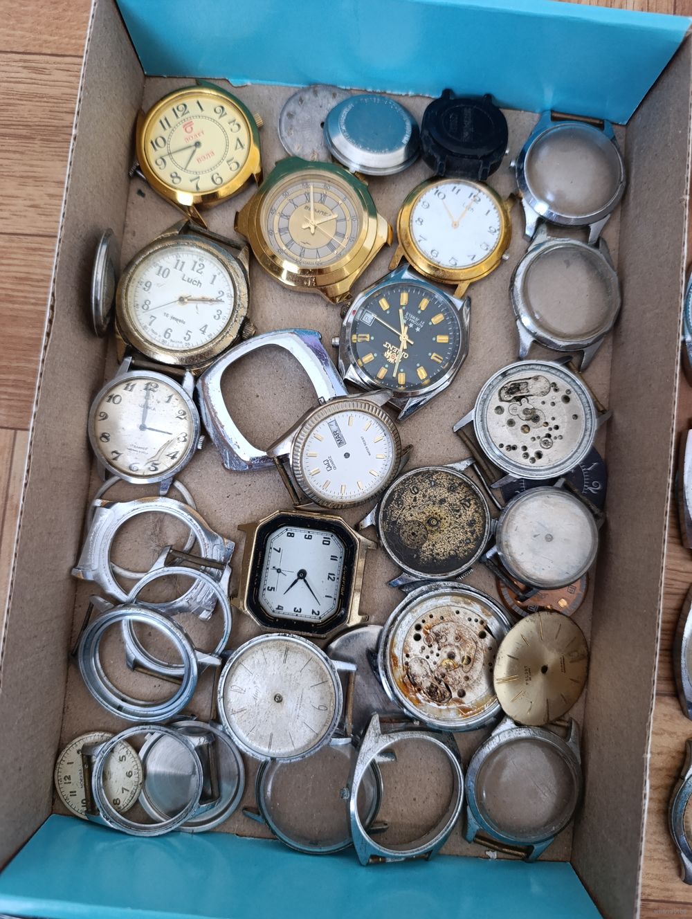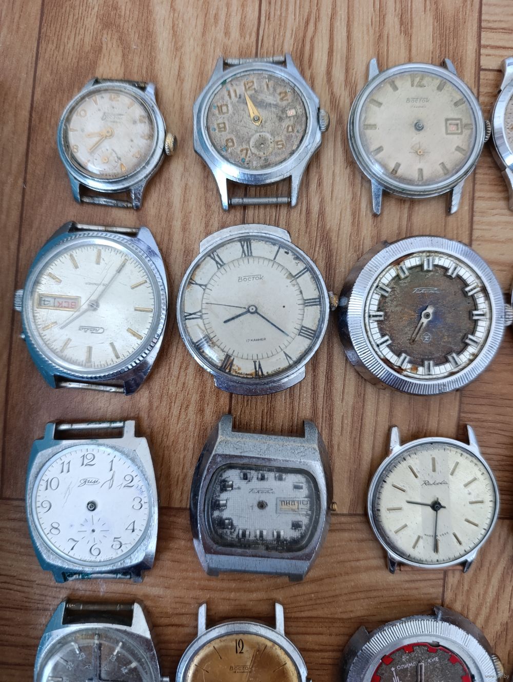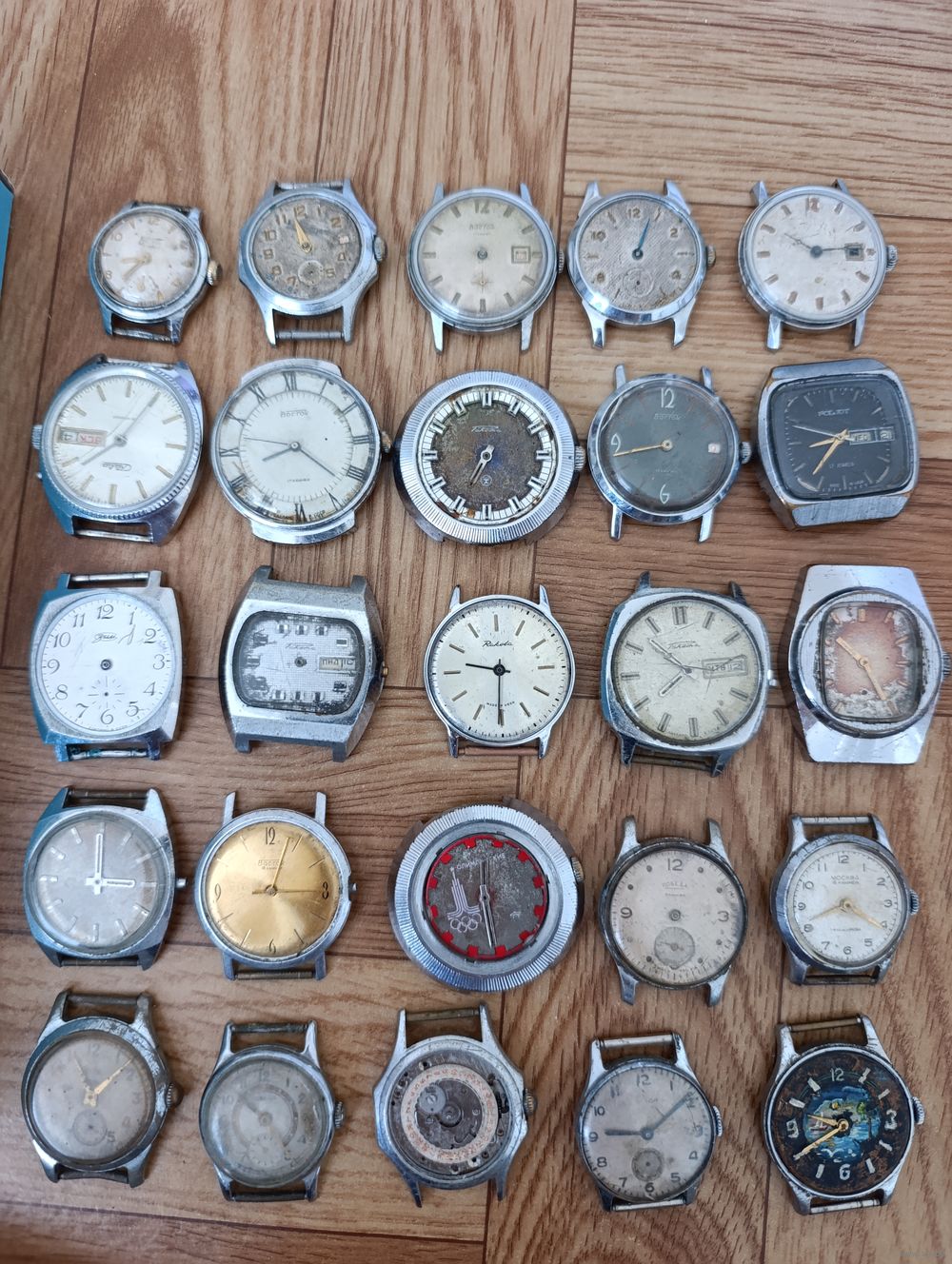 Часы сверху не в коробке 5штук работают, остальные идут как не рабочие,но где-то маятники могут быть живые. Цена за все и то что в коробке