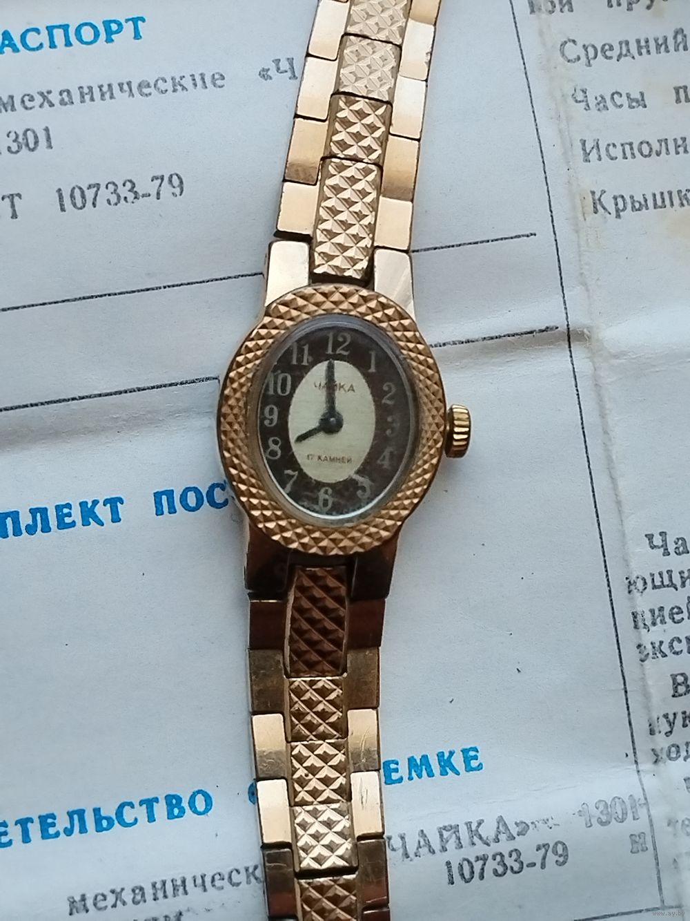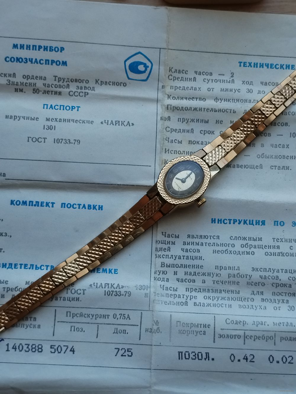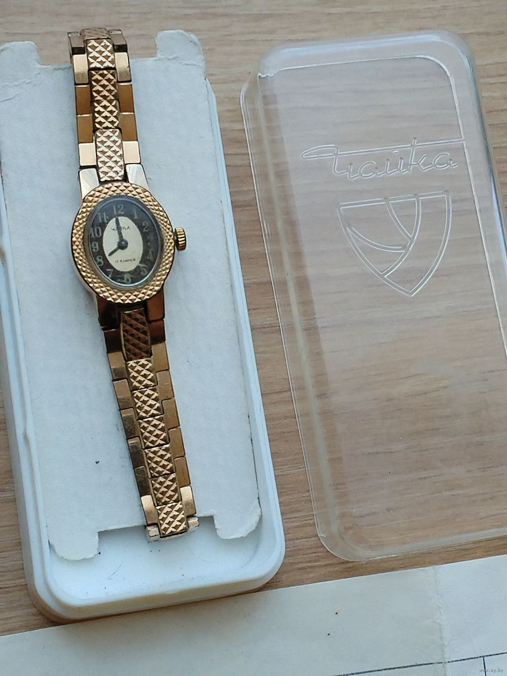 Часы как новые, но не идут.Заведены до упора. Нужна чистка. Позолота. Золото 0,42 г.