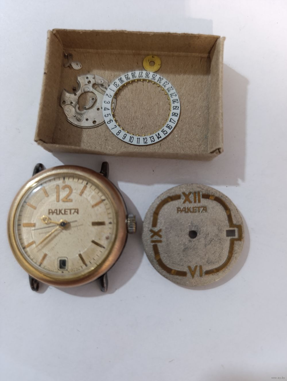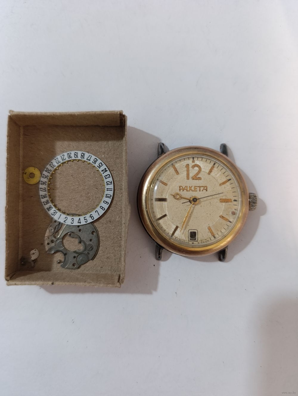 Часы на ходу,запчасти прилагаются. Есть потери позолоты на верхней крышке. Цыферблат пробит в одном месте