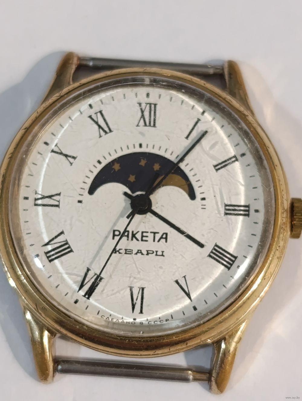 Часы на ходу Au,но клейма не нашёл. Солнце крутится очень медленно, наверное 1раз в трое а то и в четверо суток. Стекло целое.Смотрите другие мои лоты