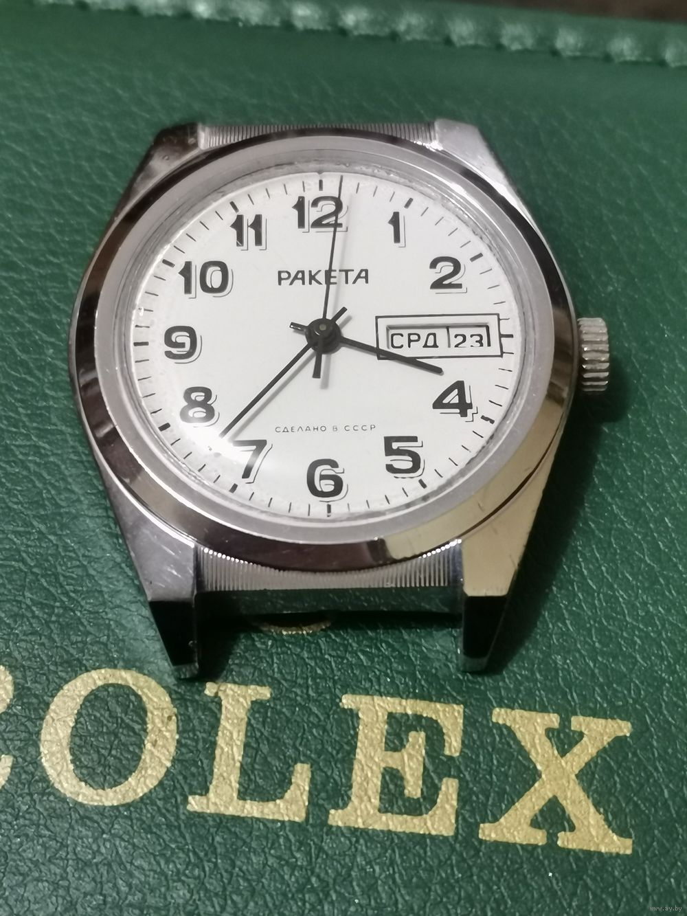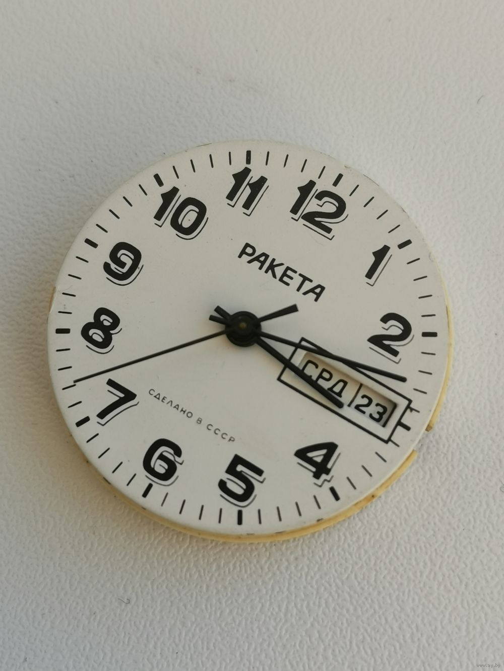 | См. фотографии. На вид состояние очень хорошее, есть заводской блеск. Баланс целый. Циферблат и стекло как новые. | |