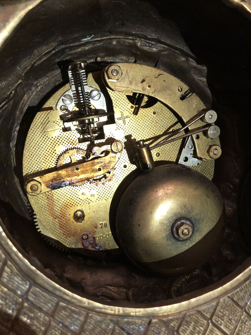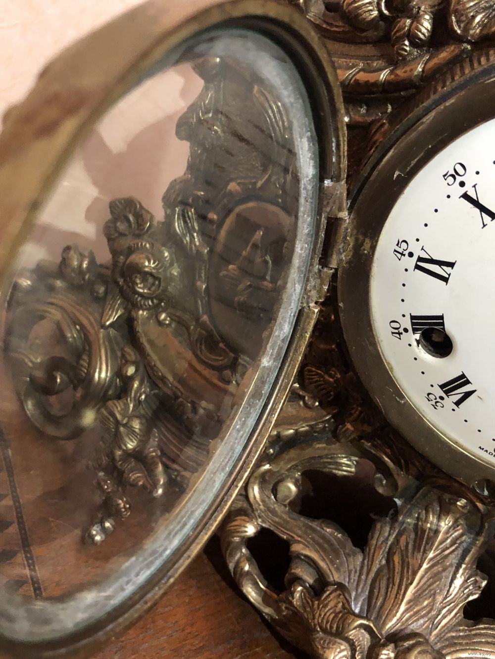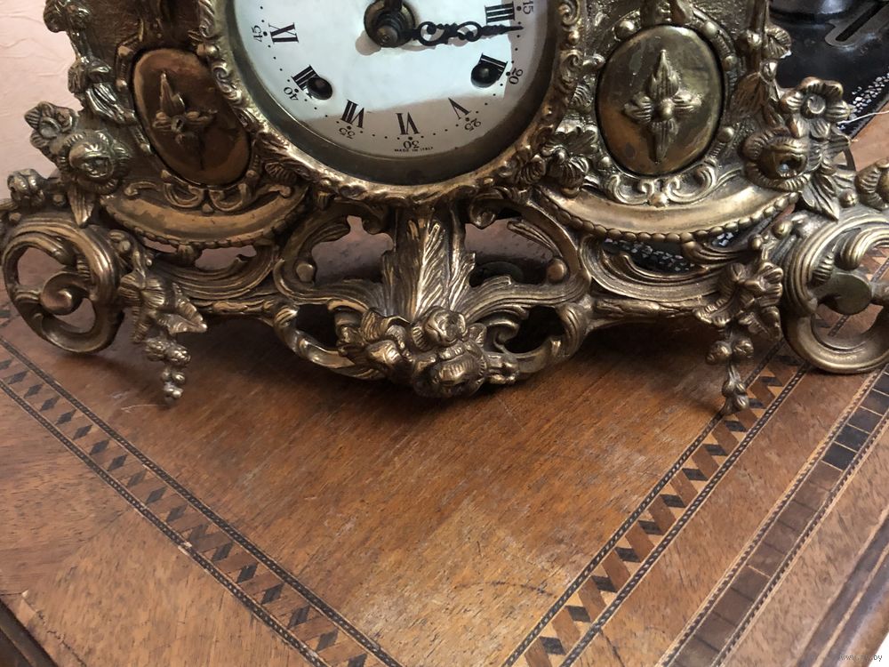 Старинные церковные часы до 1890 г. Вес 6,4 чистейшей бронзы. Размеры (ДхВхШ) - 36,5 см х 36,5 см х 11 см. Механизм родной с звонким приятным боем.