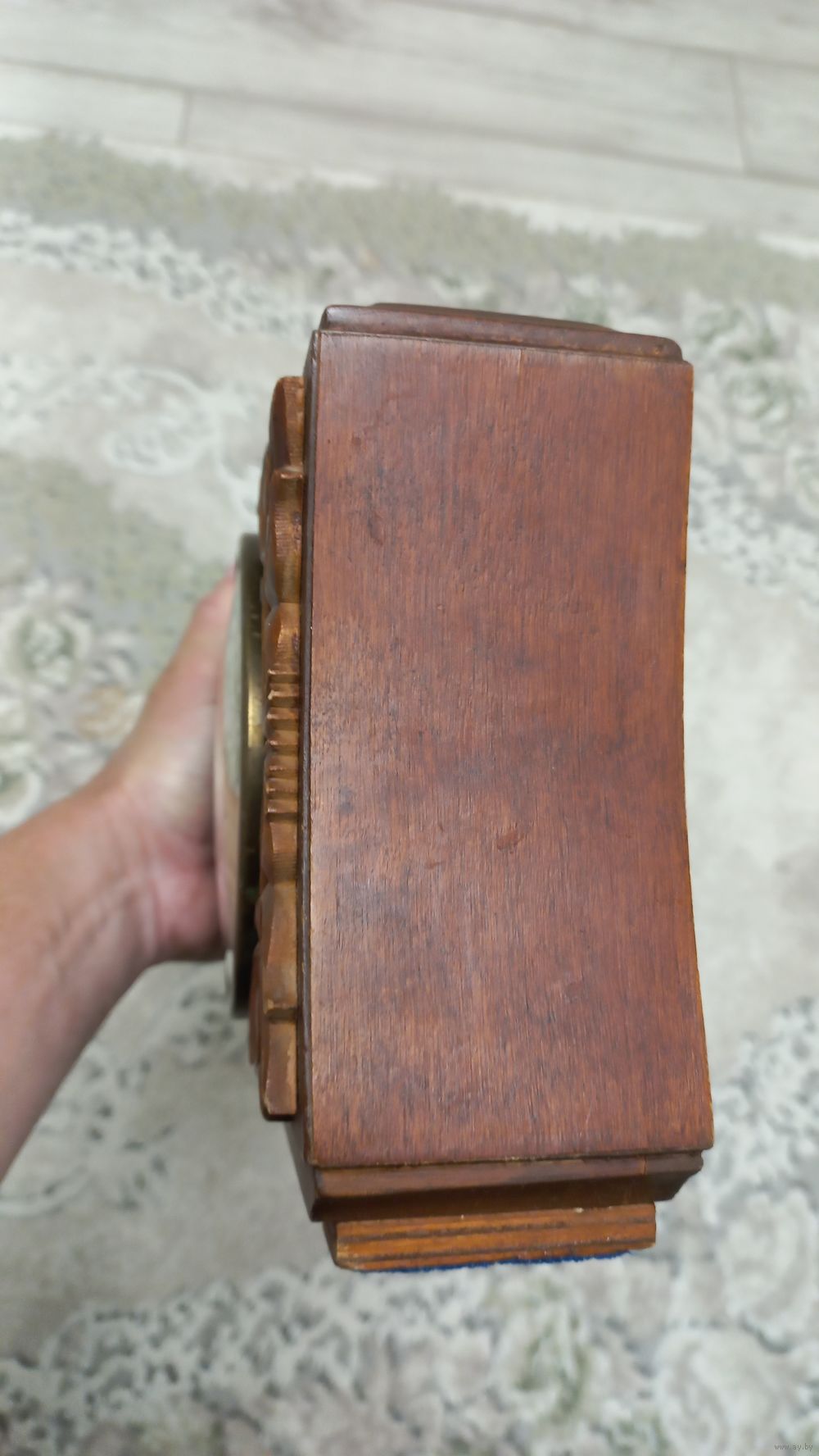 Часы Весна.СССР.Ключ есть.Корпус дерево.Снизу сохранилась часть бирки.Ручка,корпус,циферблат наверное латунь.Стрелки переводятся.Часы заводятся, но начинают по кругу двигаться стрелки.Дерево,стекло Целое.Трещин, сколов нет.Кого заинтересует смотрите фото.Пишите.