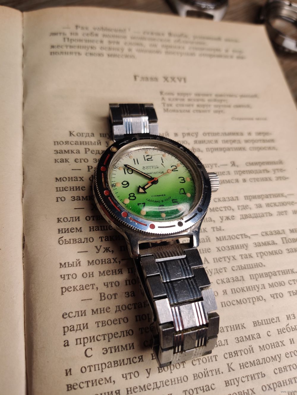 Часы на ходу, всё переводиться отлично.циферблат и стрелки в хорошем состоянии, всё видно на фото