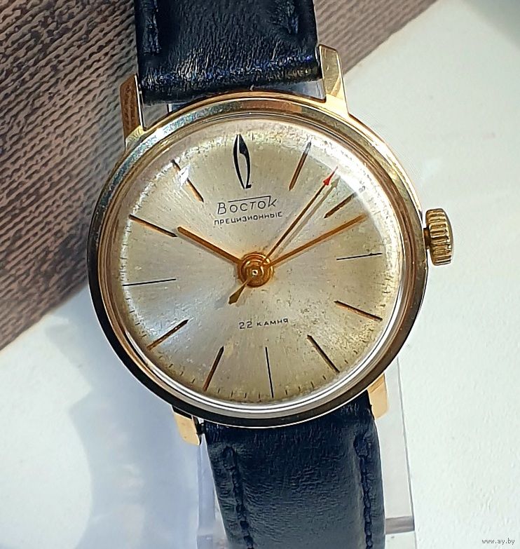 Часы ЧЧЗ, Восток прецизионные, 2809 на ходу , мех и корпус позолота , стекло без трещин и царапин , в комплекте кож. рем.
