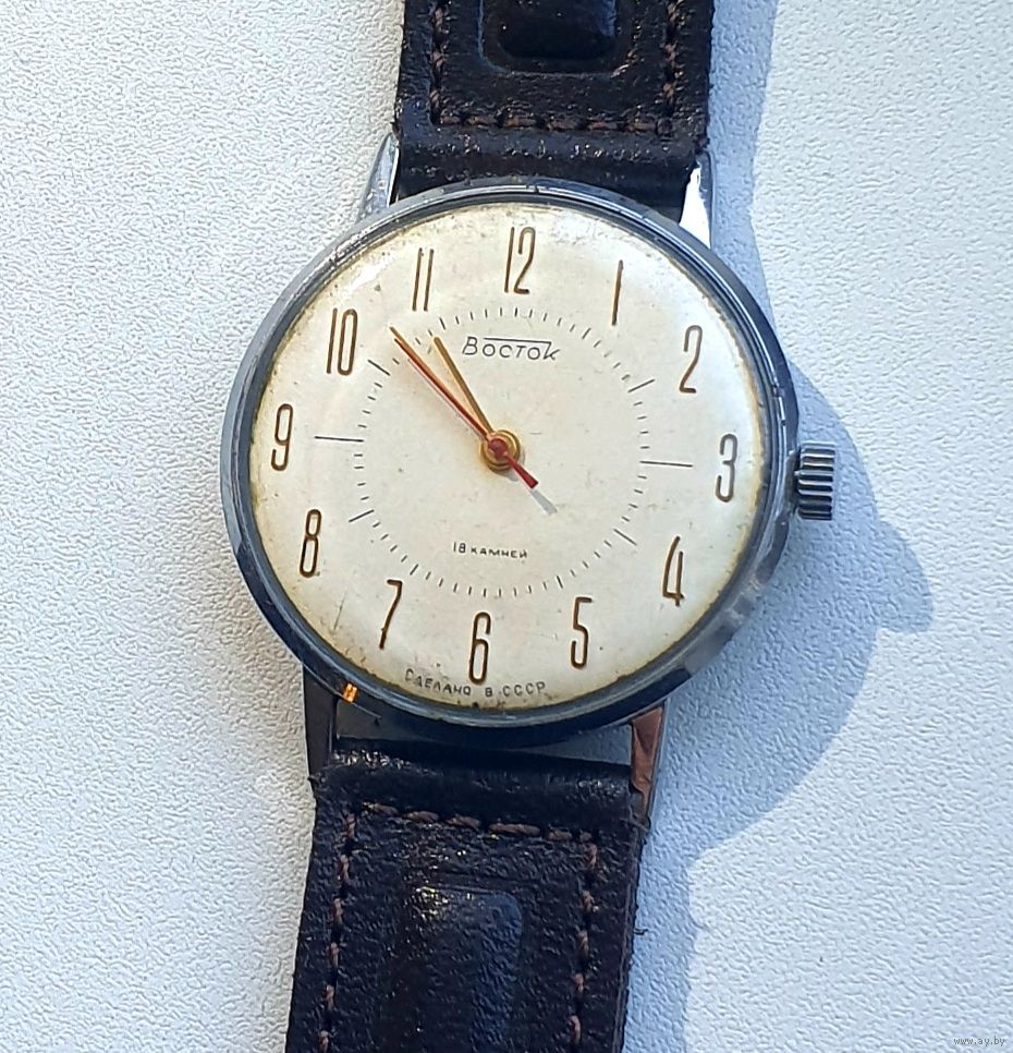 Часы Восток, тонкий костюмник, на ходу, в комплекте с ремешком.